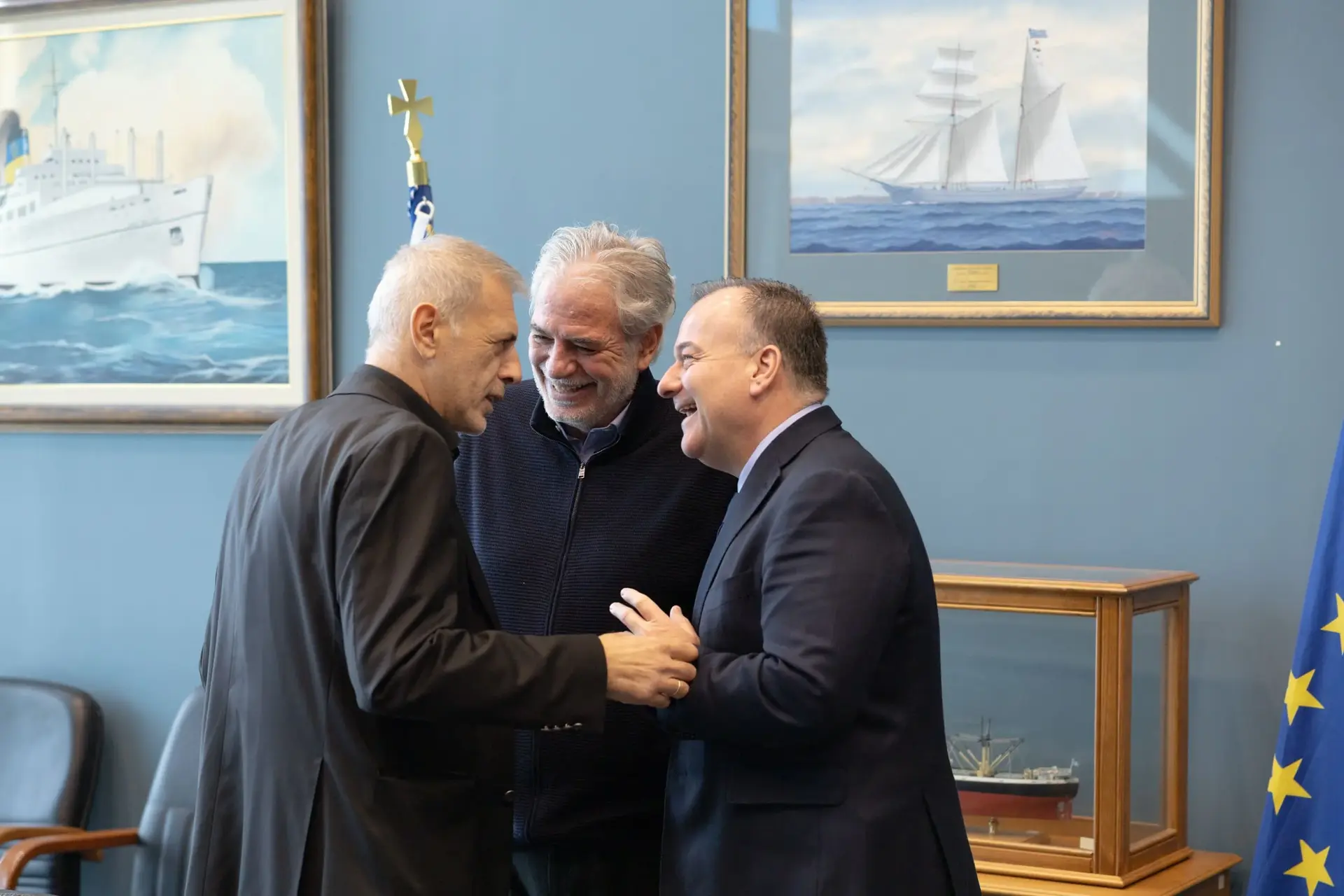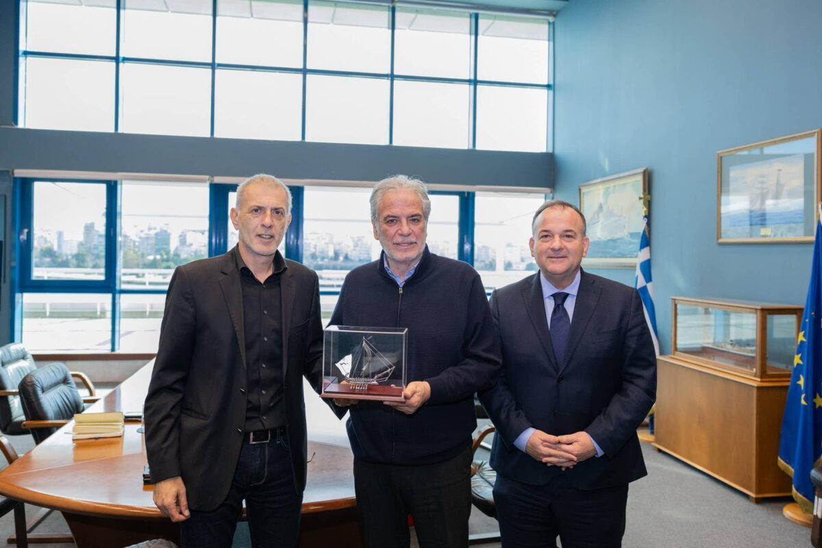 Στο τέλος της συνάντησης, ο κ. Μώραλης προσέφερε στον κ. Στυλιανίδη μια μινιατούρα αρχαίας τριήρους.