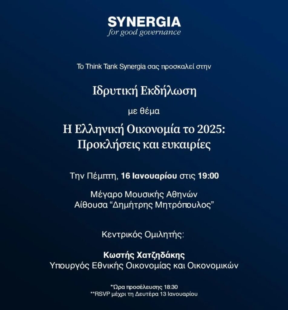 Το όνομα αυτού SYNERGIA και αποτελεί πρωτοβουλία, του διεθνή δικηγόρου και υποψήφιου στις Ευρωεκλογές με την Νέα Δημοκρατία, Ορέστη Ομράν, ο οποίος συγκέντρωσε έναν εντυπωσιακό αριθμό επιστημόνων και επιτυχημένων επαγγελματιών της Ελλάδας και του εξωτερικού σε ένα project που φιλοδοξεί να συμβάλει στην παραγωγή προτάσεων διακυβέρνησης της χώρας σε κρίσιμους τομείς, πρωταγωνιστώντας στον δημόσιο διάλογο τα επόμενα χρόνια.