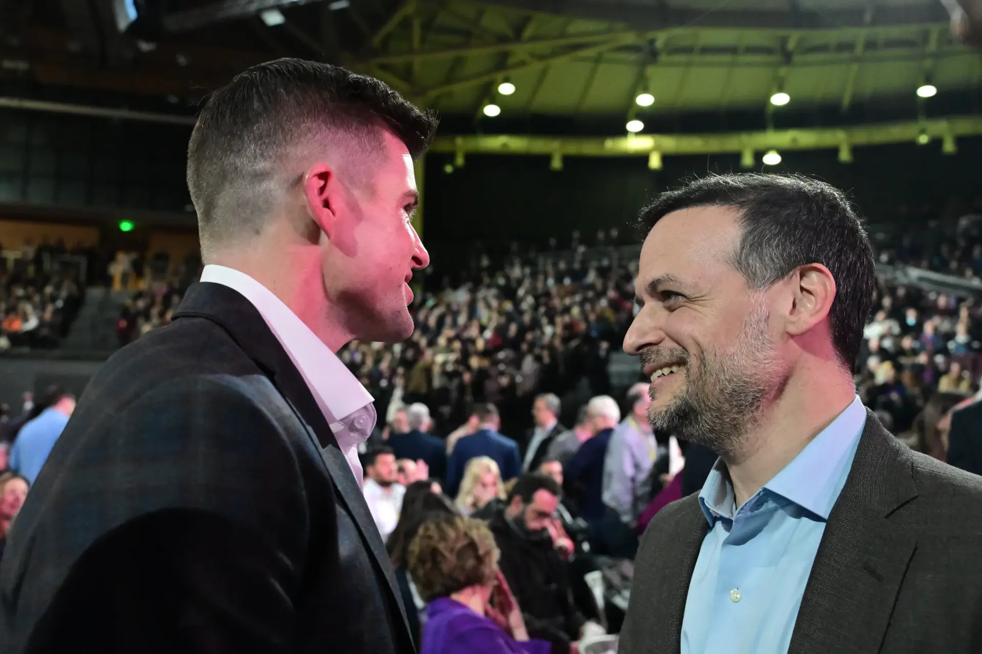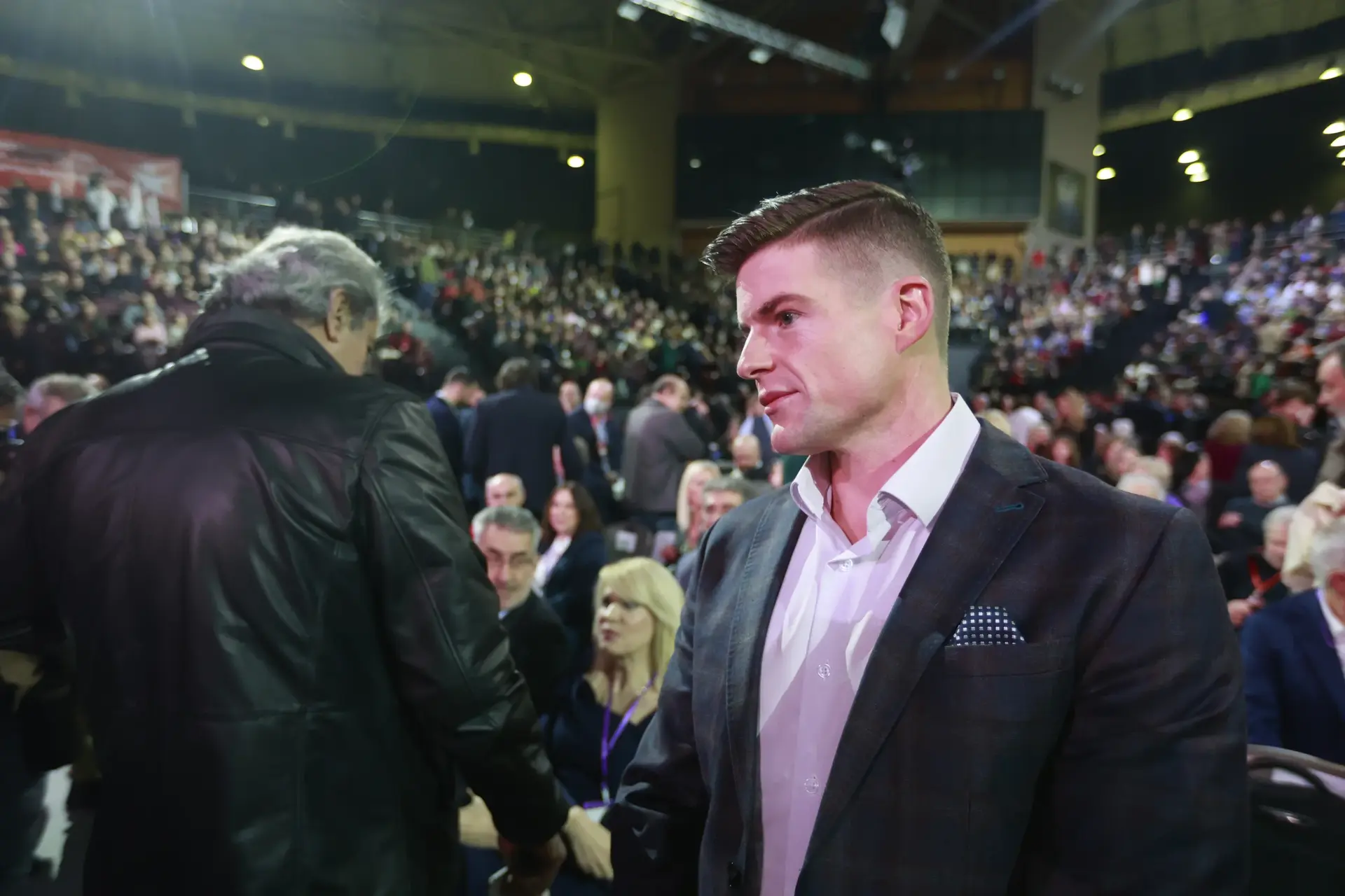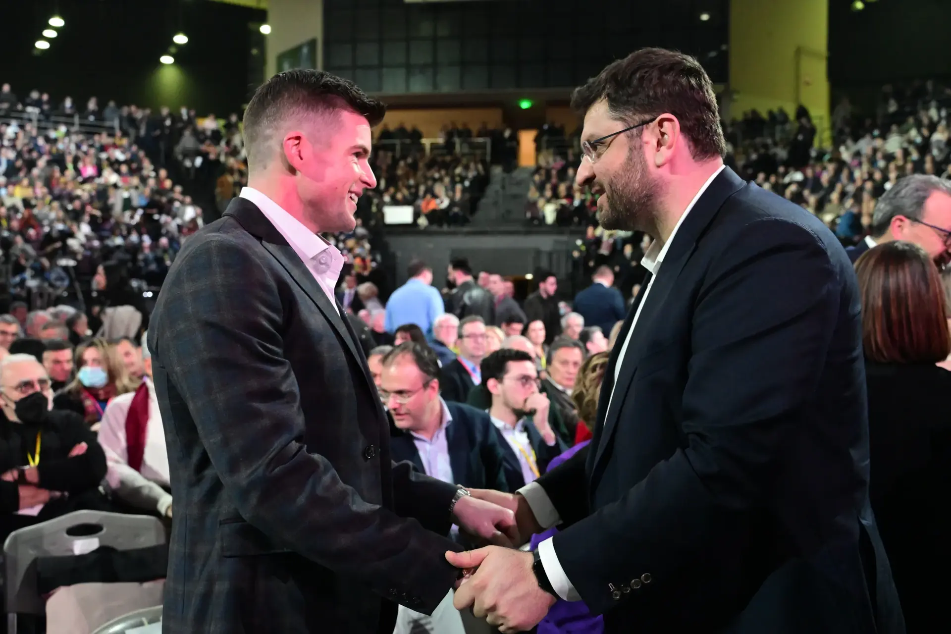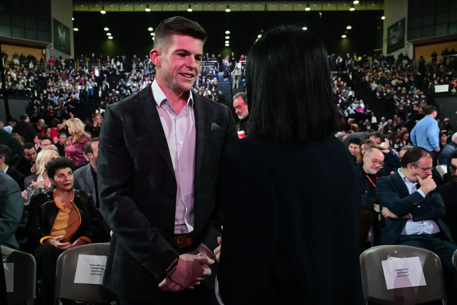 Ο Τάιλερ ΜακΜπεθ, περιμένοντας για την έναρξη του συνεδρίου του ΣΥΡΙΖΑ συνομίλησε με τον δήμαρχο Αθηναίων Χάρη Δούκα υπό το βλέμμα του Κώστα Ζαχαριάδη ενώ αμέσως μετά κάθισε στο κάθισμά του όπου είχε ένα σύντομο διάλογο με την γραμματέα της Κ.Ο του ΣΥΡΙΖΑ Θεοδώρα Τζάκρη.