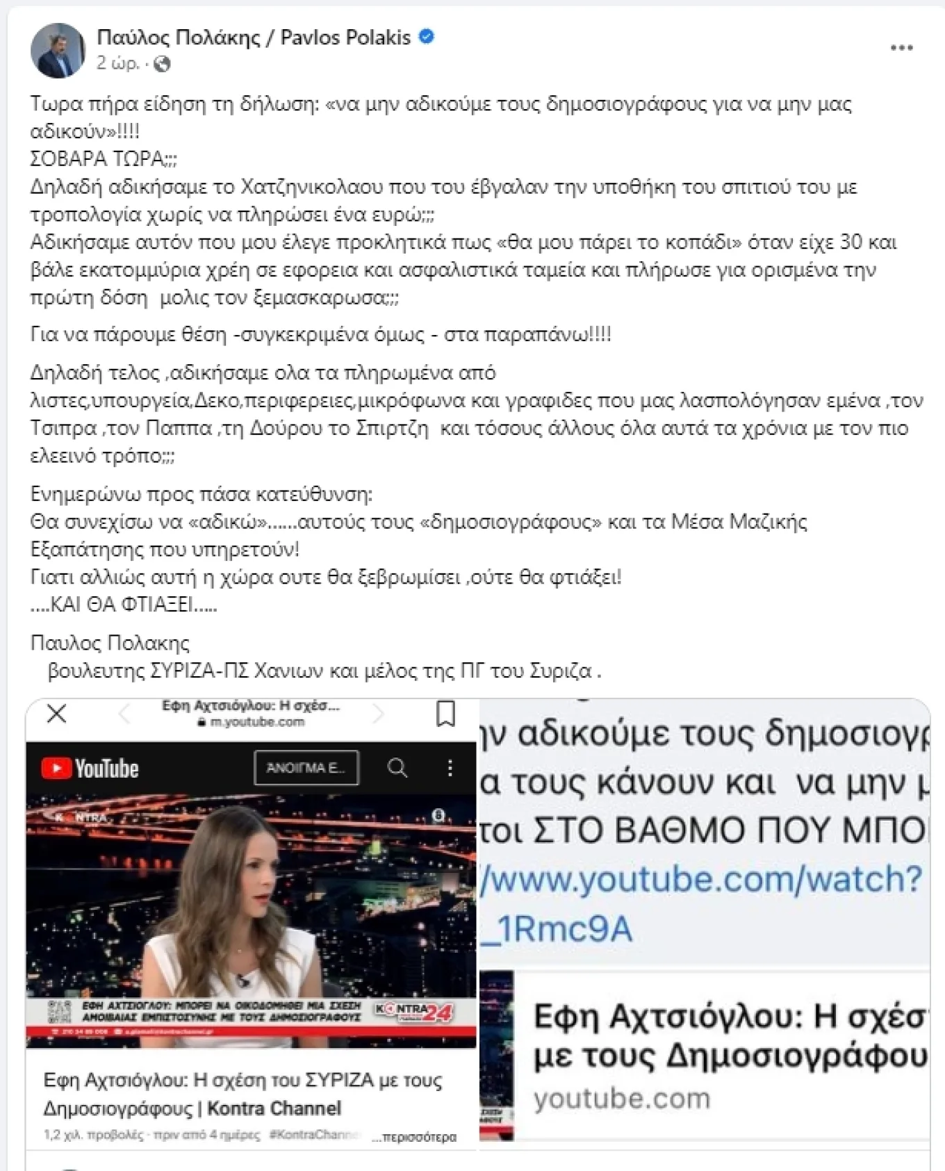 Αναλυτικά, η ανάρτηση Πολάκη: