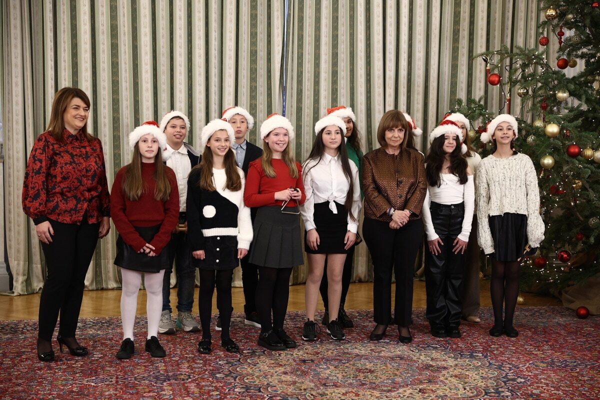 Χριστουγεννιάτικες μελωδίες, ευχές και παραδοσιακά κάλαντα στο Προεδρικό Μέγαρο από την μπάντα των ενόπλων δυνάμεων και την προεδρική φρουρά.