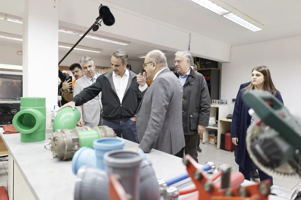 Στη συνέχεια, ο Πρωθυπουργός επισκέφθηκε την εταιρεία Interplast, η οποία παράγει ολοκληρωμένα συστήματα ύδρευσης, θέρμανσης, κλιματισμού και αποχέτευσης στους τομείς της οικοδομής, των τεχνικών έργων και των βιομηχανικών εγκαταστάσεων. Ο Κυριάκος Μητσοτάκης ξεναγήθηκε από τον ιδιοκτήτη της, Τάσο Ριζόπουλο, στην εργοστασιακή μονάδα, ενώ ενημερώθηκε για τη διαδικασία παραγωγής. Η Interplast, που απασχολεί 140 εργαζόμενους, εξάγει τα προϊόντα της σε πάνω από 75 χώρες.