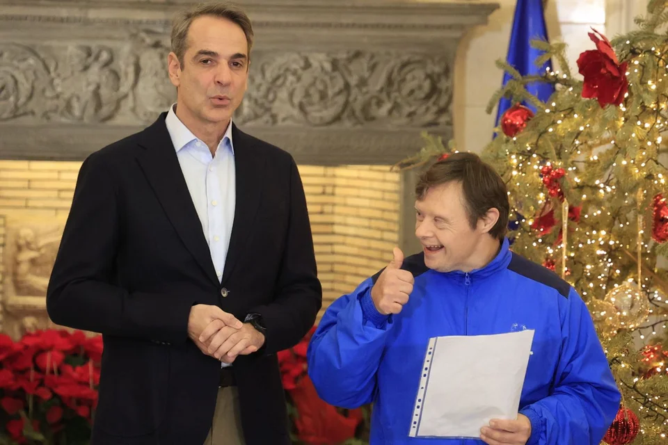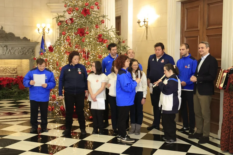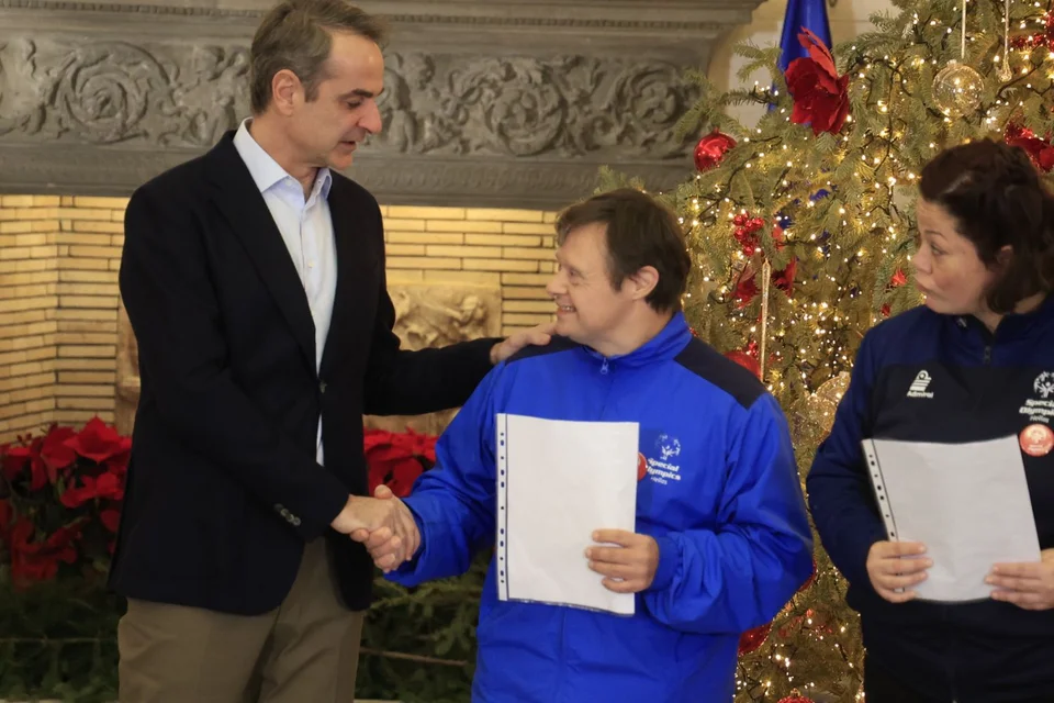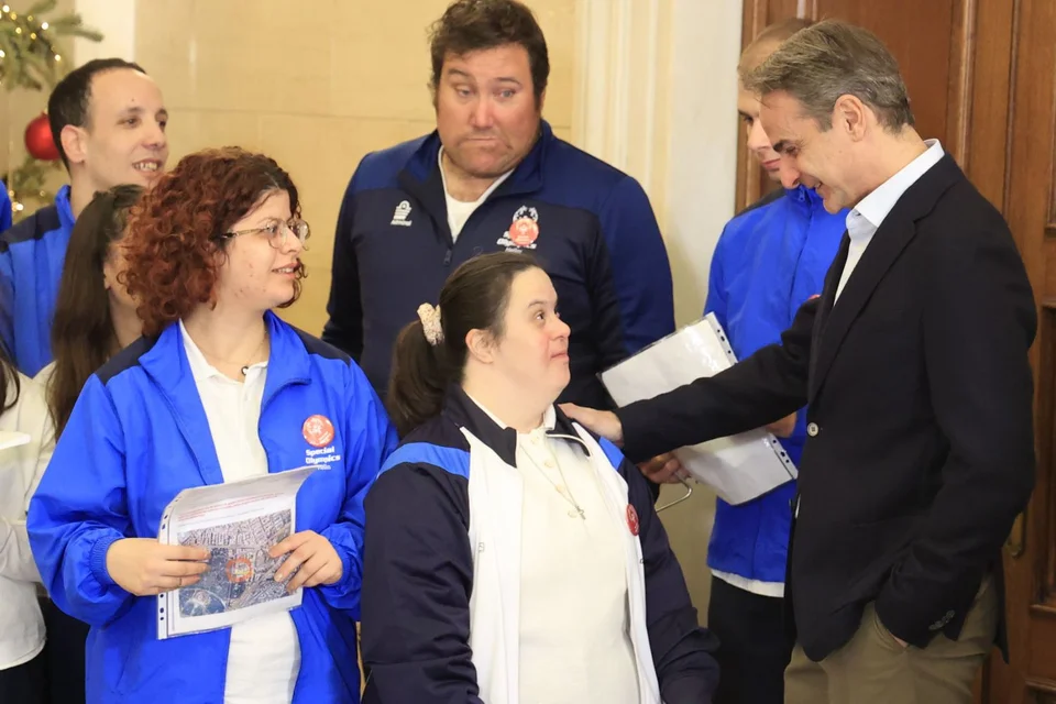 Ο πρωθυπουργός υποδέχθηκε στο Μέγαρο Μαξίμου τους αθλητές άκουσε τα κάλαντα, συνομίλησε μαζί τους, ενώ του έκαναν δώρο και ένα φούτερ εθελοντή.