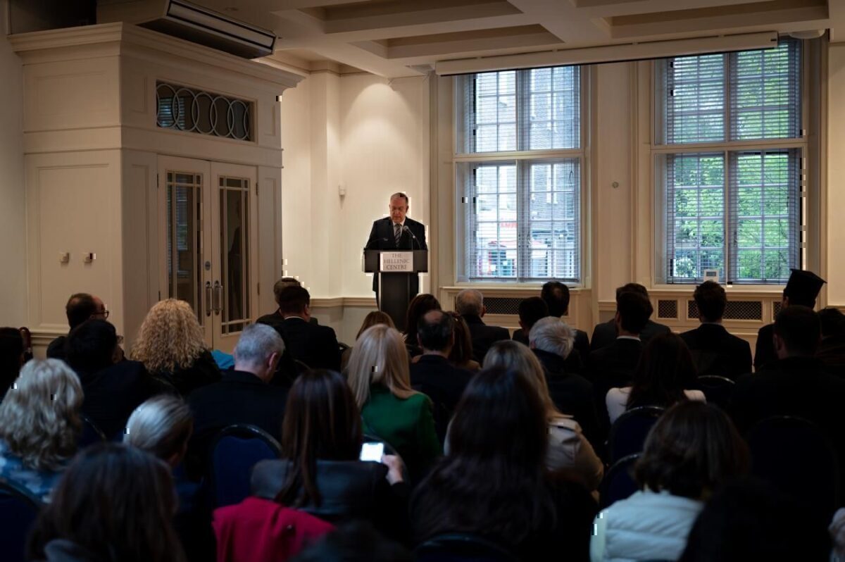 Αποτελεί ξεχωριστή χαρά και τιμή για μένα να βρίσκομαι ανάμεσα σας ανάμεσα σε άξιους Έλληνες και Ελληνίδες που κατοικούν, εργάζονται, επιχειρούν και διακρίνονται στο Λονδίνο, στην δυναμική πρωτεύουσα της μεγάλης Βρετανίας, της μεγάλης χώρας, με την οποία παραδοσιακά έχουμε ισχυρούς δεσμούς.