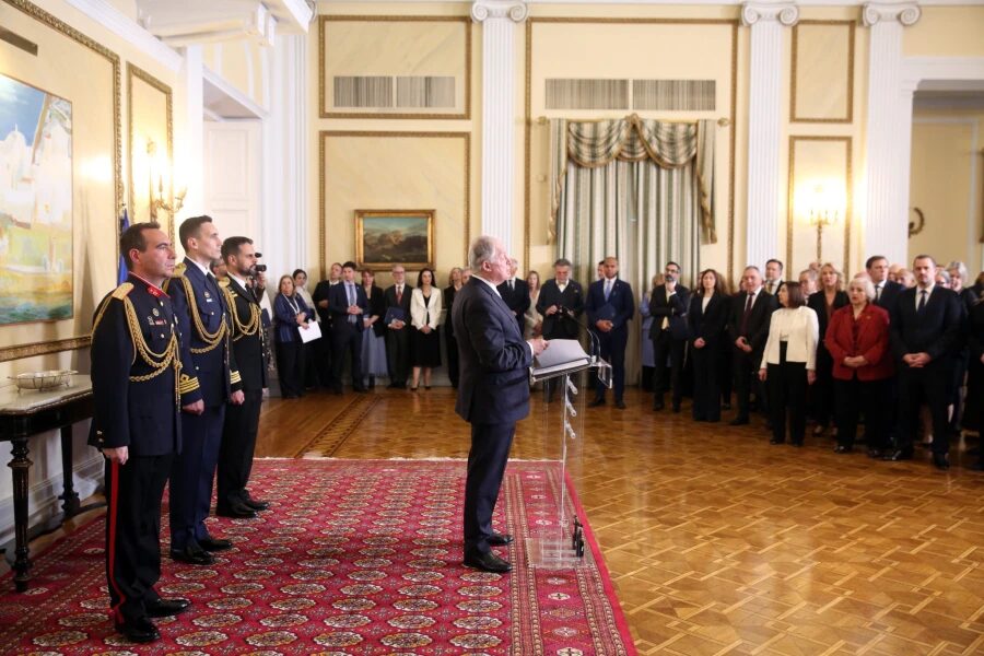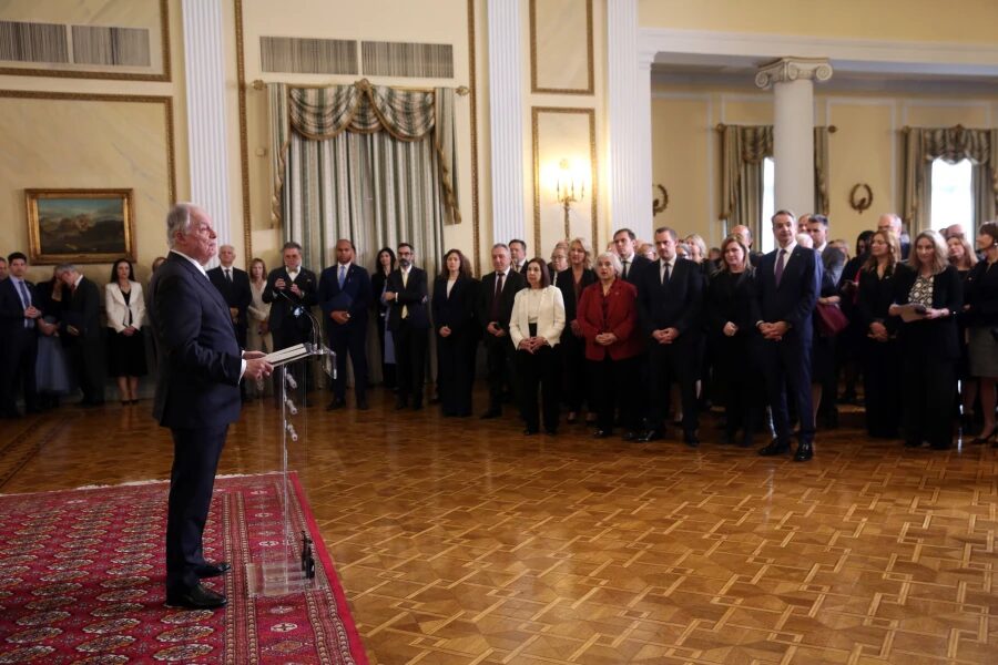 Ο Κωνσταντίνος Τασούλας υποδέχθηκε στο Προεδρικό Μέγαρο τις διπλωματικές αντιπροσωπείες των ξένων χωρών που λειτουργούν στην Αθήνα καθώς και διπλωμάτες και εργαζόμενους του Υπουργείου Εξωτερικών. Παρόντες στο Προεδρικό Μέγαρο ήταν ο πρωθυπουργός Κυριάκος Μητσοτάκης και η υφυπουργός Εξωτερικών Αλεξάνδρα Παπαδοπούλου.