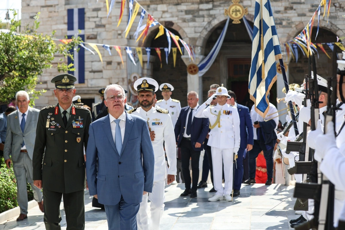 Στις εορταστικές εκδηλώσεις στην Πάρο παρών ήταν επίσης ο Αρχηγός ΓΕΕΘΑ Στρατηγός Δημήτριος Χούπης, την κυβέρνηση εκπροσώπησε ο αναπληρωτής υπουργός Παιδείας, Θρησκευμάτων και Αθλητισμού Ιωάννης Βρούτσης, ενώ τον πρόεδρο της Βουλής εκπροσώπησε η βουλευτής Κατερίνα Μονογυιού. Παρόντες, τέλος, ο περιφερειάρχης Νοτίου Αιγαίου Γιώργος Χατζημάρκος και δήμαρχος Πάρου Κωνσταντίνος Μπιζάς.