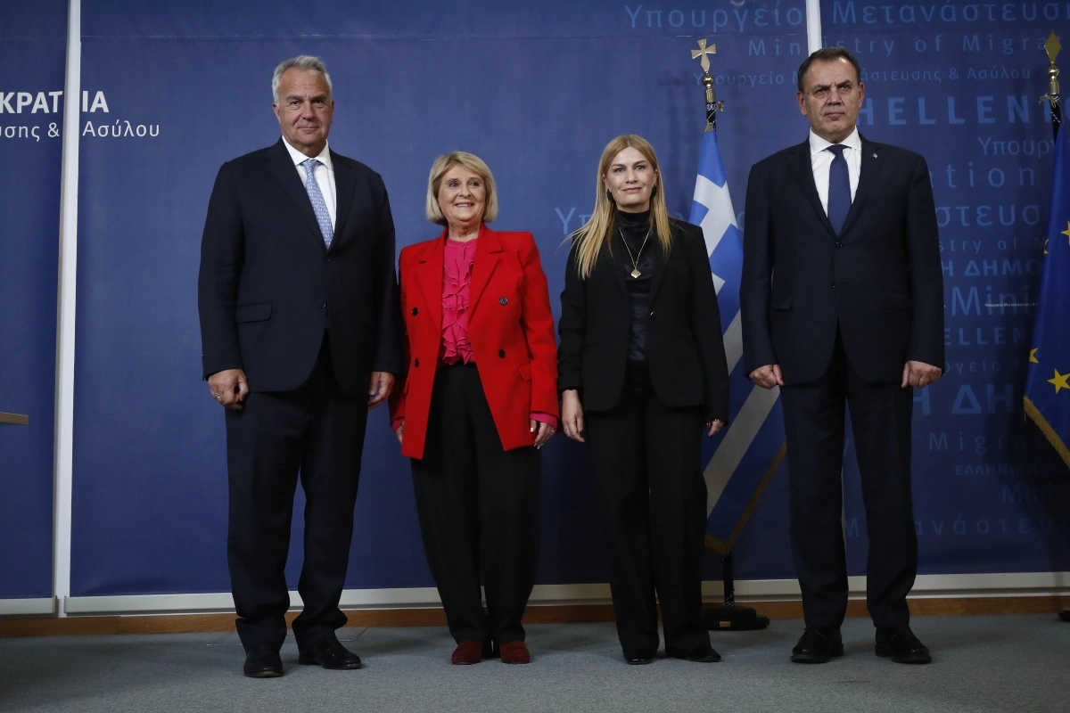 Αρχικά τον λόγο πήρε ο Νίκος Παναγιωτόπουλος, ο οποίος ανέφερε: «Το ζήτημα είναι στη μικρή ή μεγάλη θητεία που κάποιος κατέχει κάποιο αξίωμα, ο χρόνος που σου έχει δοθεί να είναι χρόνος χρήσιμος και παραγωγικός, να είναι χρόνος γεμάτος έργο και αποτέλεσμα. Στο υπουργείο Μετανάστευσης και Ασύλου στους εννέα μήνες της θητείας μου θεωρώ ότι παράχθηκε ικανό έργο. Το υπουργείο Μετανάστευσης και Ασύλου είναι ένα σύνθετο και περίπλοκο υπουργείο. Είναι μία καθημερινή διαχείριση μικρών και μεγάλων κρίσεων, από την ευρωπαϊκή διαπραγμάτευση για τις χρηματοδοτικές δυνατότητες διαχείρισης του προβλήματος μέχρι την υδροδότηση της δομής της Σάμου και επομένως η πολιτική ηγεσία πρέπει να είναι συνέχεια παρούσα σε συνεχή εγρήγορση και σε συνεχή προσέγγιση διαχείρισης κρίσης.