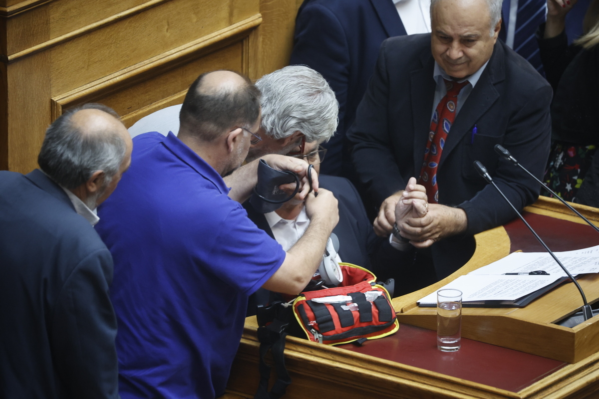 Ο κ. Κουτσούμπας είχε από την αρχή της ομιλίας πρόβλημα στη μέση του με αποτέλεσμα κάποια στιγμή να καταρρεύσει λόγω ενός σπασμού στη μέση. Η συνεδρίαση διεκόπη για πέντε λεπτά περίπου και στην συνέχεια ο κ. Κουτσούμπας συνέχισε κανονικά την ομιλία του και μάλιστα καταχειροκροτήθηκε από όλους τους βουλευτές.
