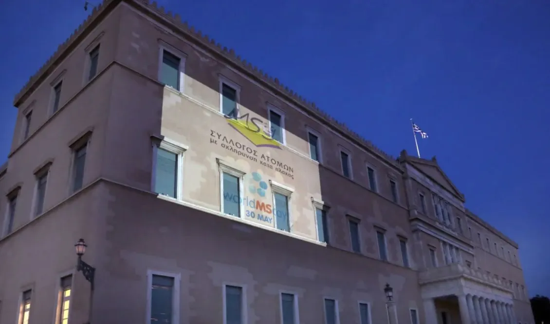 Η Βουλή των Ελλήνων τιμά την Παγκόσμια Ημέρα για την Σκλήρυνση κατά Πλάκας με τη φωταγώγηση της πρόσοψης του κτιρίου της