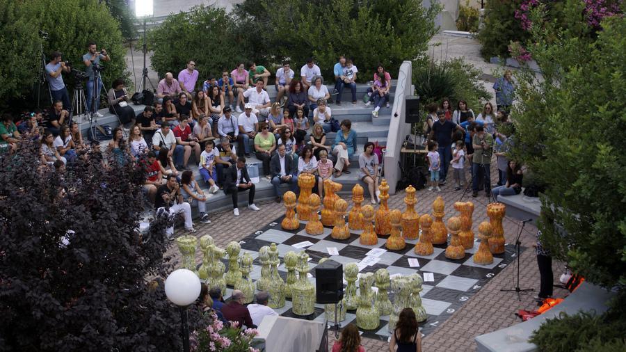 Το πρωτότυπο αυτό έργο, εγκαινιάσθηκε από τον grand master και έλληνα πρωταθλητή του 2015 στο σκάκι, Αθανάσιο Μαστροβασίλη, με ένα συμβολικό «Παιχνίδι Στρατηγικής στη Σκακιέρα του Κόσμου» που έπαιξε ο ίδιος με 12 αντιπάλους, 10 φοιτητές του Πανεπιστημίου Αιγαίου και δυο μαθητές του Πειραματικού του Λυκείου.