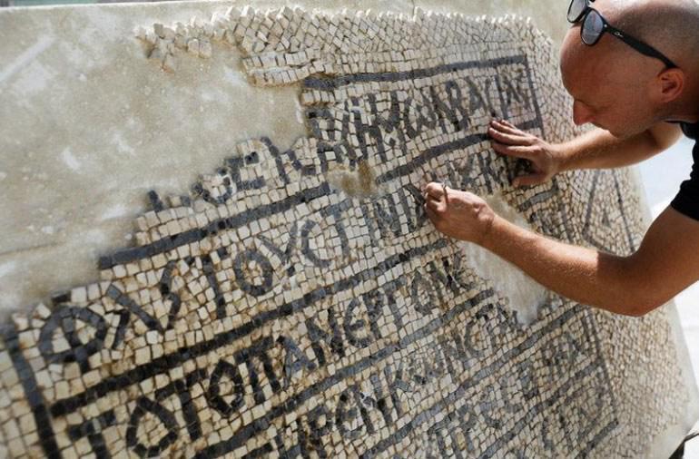 Πρόκειται για ένα μωσαϊκό πάτωμα ηλικίας 1.500 χρόνων πάνω στο οποίο υπάρχει μία ελληνική επιγραφή.