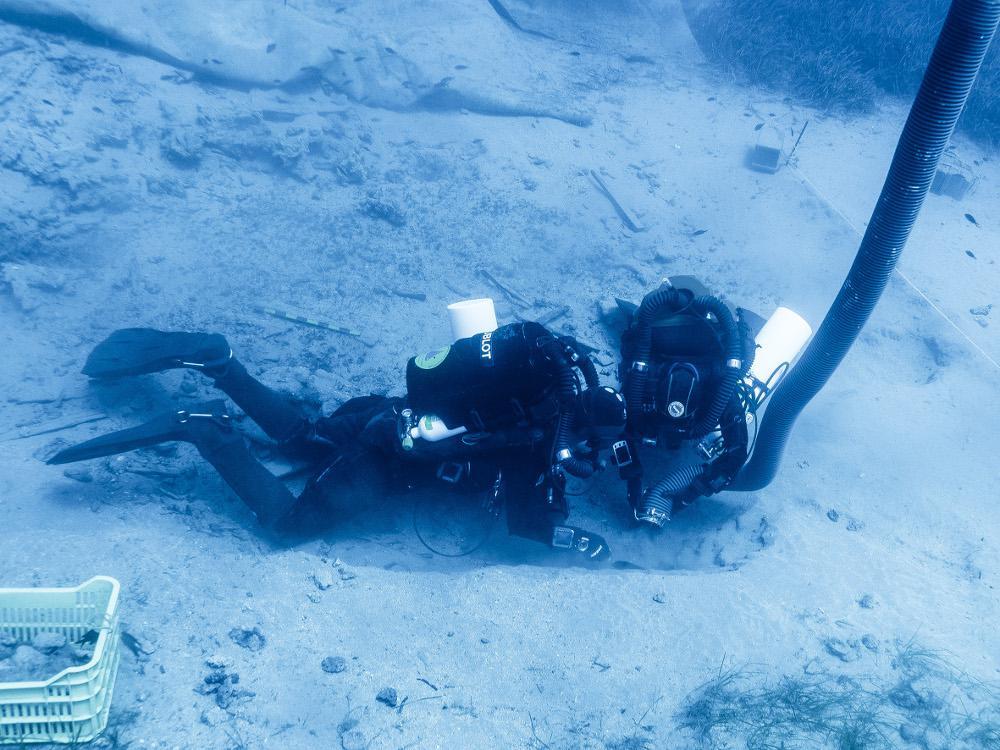«Ενώ πάντα περιοριζόμασταν στην περιοχή που έχει διασωθεί το σκαρί του πλοίου, αυτή τη φορά προχωρήσαμε αρκετά πιο μακριά από το σκαρί», επισημαίνει ο Δ. Κουρκουμέλης.