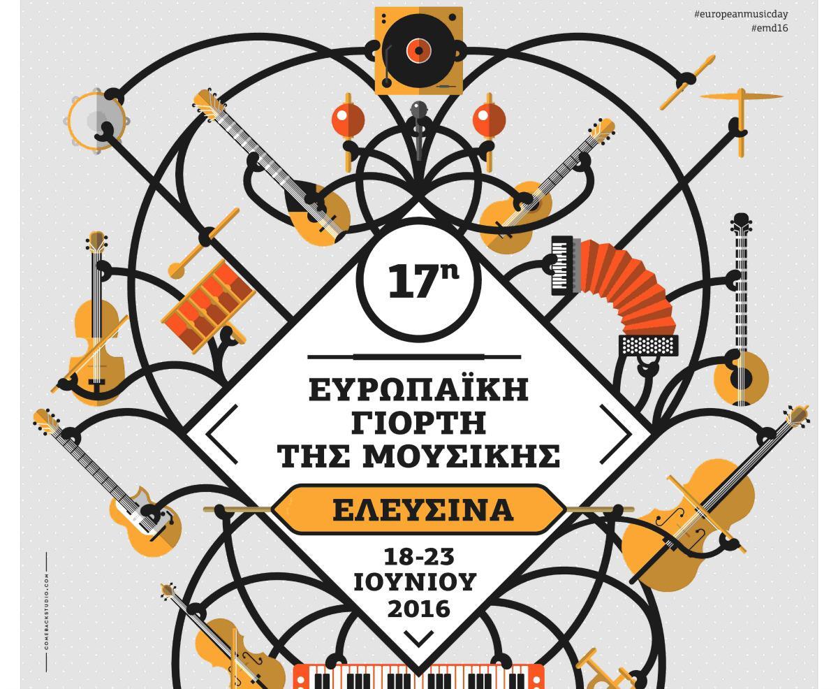 Το 2016 η πόλη της Ελευσίνας θα πραγματοποιήσει την παρθενική της εμφάνιση στο θεσμό της Ευρωπαϊκής Γιορτής της Μουσικής. Ένα θεσμό που 17 χρόνια τώρα γιορτάζεται, όχι μόνο σε ελληνικές, αλλά και σε πόλεις όλης της Ευρώπης. Η Ελευσίνα 2021 υποστηρίζει και αγκαλιάζει την προσπάθεια αυτή, με κινητήριο δύναμη 10 επιχειρήσεις εστίασης, που πήραν την πρωτοβουλία να ενεργοποιήσουν τη συμμετοχή της πόλης μας. Οι μουσικές εκδηλώσεις θα διαρκέσουν 4 ημέρες, 19-22 Ιουνίου και θα είναι διάσπαρτες σε τέσσερα διαφορετικά σημεία του δημοσίου χώρου της Ελευσίνας, με συνολικά 4 μπάντες και 6 djs sets.
