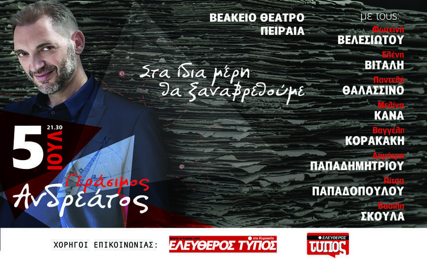 Κερδίστε προσκλήσεις για τη μεγάλη συναυλία του Γεράσιμου Ανδρέατου στις 5 Ιουλίου στο Βεάκειο.