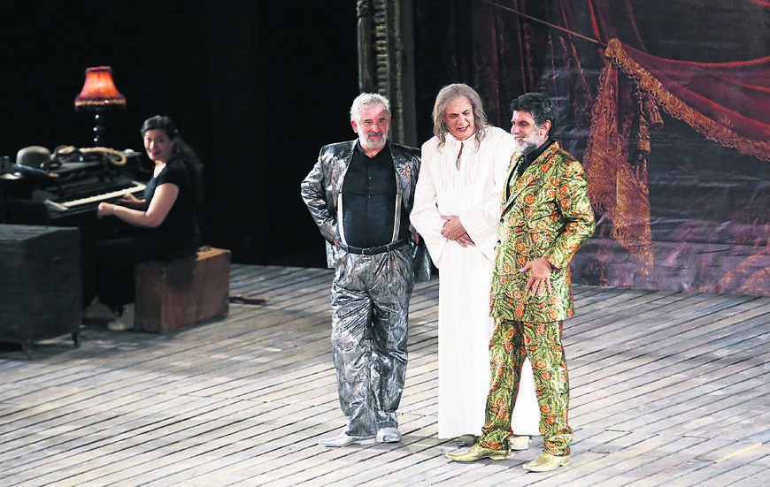 Οι τρεις μεγάλοι ηθοποιοί, με μεγάλη πείρα στην κωμωδία, ένωσαν τις δυνάμεις στη φιλόδοξη διασκευή ενός από τα μεγαλύτερα έργα του αρχαίου θεάτρου και απέσπασαν το χειροκρότημα του κατάμεστου θεάτρου. Οι πρωταγωνιστές, μαζί με 12μελή χορό ηθοποιών και μουσικών, εγκαινίασαν τα φετινά Επιδαύρια, αναζητώντας τον «πραγματικό πλούτο στις ιδέες και στις αξίες».