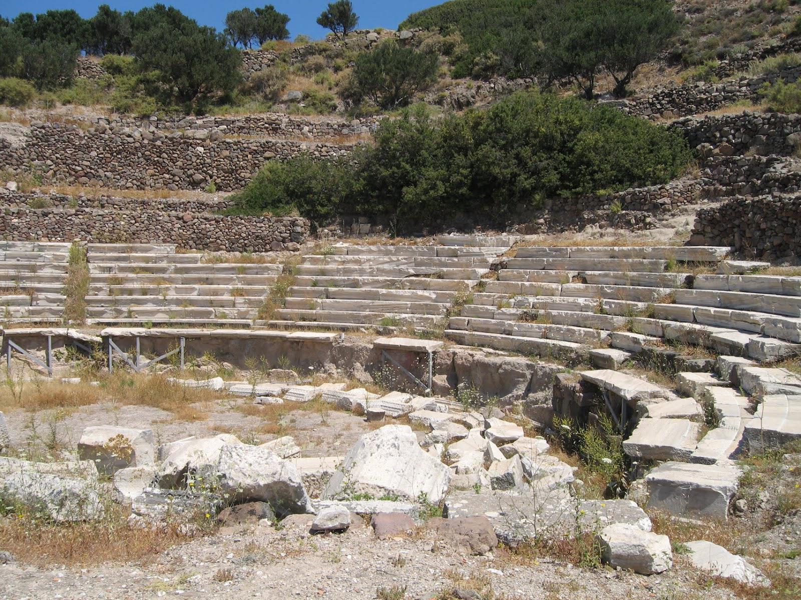 Το μαρμάρινο θέατρο, παρά το γεγονός ότι έχει ερευνηθεί μερικώς καθώς το μεγαλύτερο τμήμα του είναι ακόμη θαμμένο κάτω από τις επιχώσεις και τις ξερολιθιές, είναι ένα από τα καλύτερα σωζόμενα αρχαία θεατρικά οικοδομήματα στις Κυκλάδες. Πρόκειται για πολυτελές έργο της ρωμαϊκής περιόδου (1ος – 4ος αι. μ.Χ.), η κατασκευή του οποίου πρέπει να ήταν τμηματική και μακρόχρονη, με πιθανές φάσεις αναδιαμόρφωσης. Aποτελεί αξιόλογο δείγμα θεατρικού οικοδομήματος της εποχής του, με χαρακτηριστικά που απαντούν στα ρωμαϊκά και «εκρωμαϊσμένα» θέατρα των ανατολικών επαρχιών της Ρωμαϊκής Αυτοκρατορίας, ο τύπος των οποίων διαμορφώθηκε με πρότυπο το ελληνικό θέατρο.