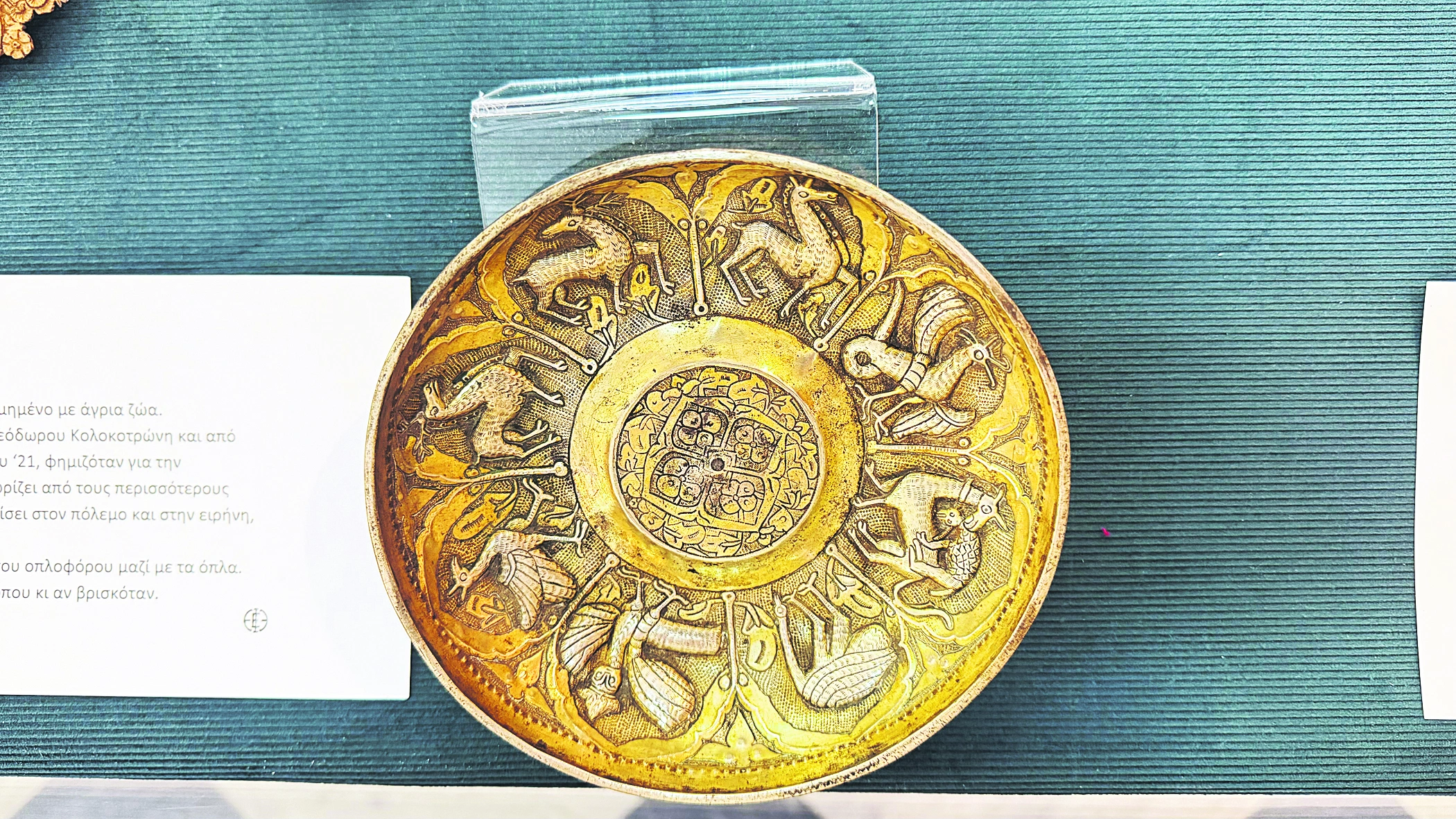 Ξεχωρίζουν οι πρωτότυπες επιστολές του Γέρου του Μοριά, Θεοδώρου Κολοκοτρώνη (όπως εκείνη που έστειλε σε οπλαρχηγούς πριν χτυπήσει τον Δράμαλη στα Δερβενάκια), ο χειρόγραφος όρκος του Δημητρίου Πλαπούτα, ο πέλεκυς του Γεωργίου Καραϊσκάκη, το γιαταγάνι του Κωνσταντή Κανάρη, το τάσι του Νικηταρά, που προέρχονται από την συλλογή της Ιστορικής και Εθνολογικής Εταιρείας της Ελλάδος και από ιδιωτικές συλλογές. Επίσης, εκτίθενται και μοναδικά κειμήλια, που φυλάσσονται στις Ιερές Μονές Βατοπαιδίου, Σίμωνος Πέτρας και Παντοκράτορος του Αγίου Ορους, όπως τα όπλα του αρχηγού της Επανάστασης στη Μακεδονία, Εμμανουήλ Παπά, καθώς και η επιστολή παραχώρησης προς την Υδρα ιερών σκευών προς φύλαξη κατά τη διάρκεια της Επανάστασης και επεστράφησαν μετά την απόκτηση της ανεξαρτησίας.