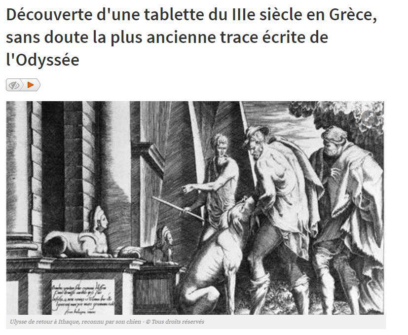 Το ραδιοτηλεοπτικό βελγικό δίκτυο RTBF κάνει λόγο «Η ανακάλυψη της πλάκας του 3ου αιώνα στην Ελλάδα, είναι ίσως το παλαιότερο γραπτό δείγμα της Οδύσσειας».