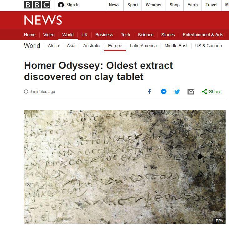 Το ΒΒC αναφέρει τις εκτιμήσεις του ελληνικού Υπουργείου Πολιτισμού, σύμφωνα με τις οποίες η πήλινη αυτή επιγραφή ίσως να συνιστά το αρχαιότερο γραπτό αρχείο του ομηρικού έπους που έχει ποτέ βρεθεί στην Ελλάδα.