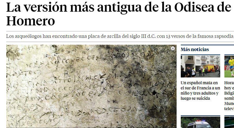 «Η παλαιότερη εκδοχή της Οδύσσειας του Ομήρου» είναι ο τίτλος της ισπανικής «La Vanguardia», η οποία αναφέρεται στο περιεχόμενο των στίχων οι οποίοι περιγράφουν την ομιλία του Οδυσσέα στον Εύμαιο.