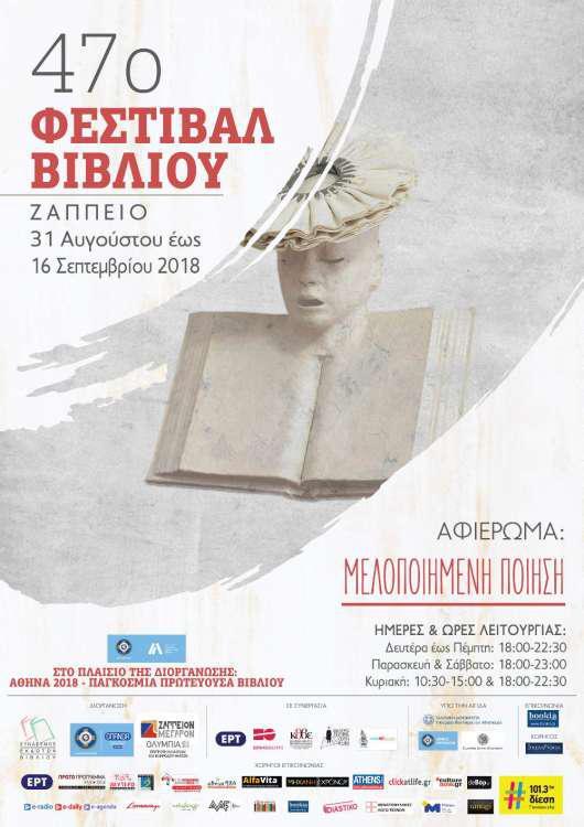 Το 47ο Φεστιβάλ Βιβλίου στο Ζάππειο θα λειτουργεί καθημερινά από τις 31 Αυγούστου έως και τις 16 Σεπτεμβρίου 2018.