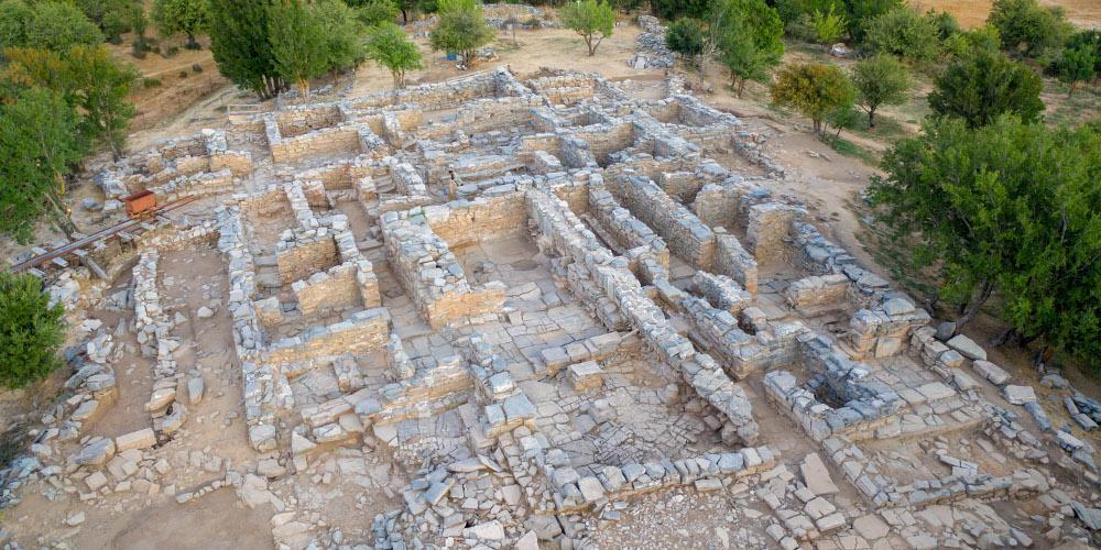 – Στη νοτιοανατολική μεγαλοπρεπή είσοδο οι τομές ανέδειξαν τις παραστάδες αλλά και αποκάλυψαν πλήρως τον δυτικό χώρο με βωμό και αποθέτη, καθώς και το δάπεδο ορόφου που διατηρήθηκε πεσμένο λοξά προς εξωτερικό χώρο.