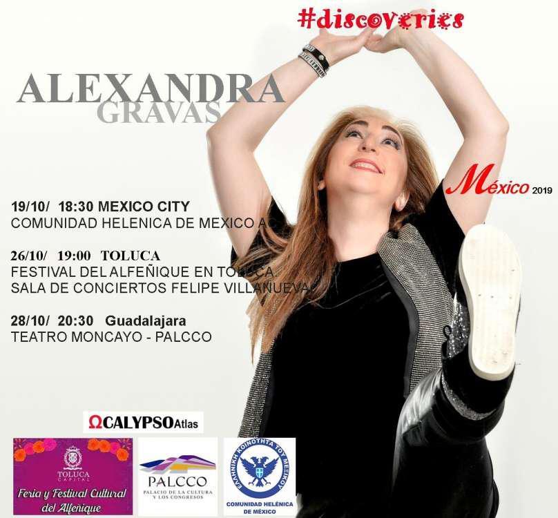«Το Μεξικό είναι πλέον ένας λατρεμένος προορισμός που μου έχει χαρίσει ανεπανάληπτες μουσικές εμπειρίες και σταθερές φιλίες. Ένας τόπος που πλέον επισκέπτομαι κάθε χρόνο και αποτελεί μια ακόμα πατρίδα για μένα. Είμαι πολύ χαρούμενη που φέτος τραγουδώ για έκτη χρονιά στο Μεξικό, έναν τόπο που με έχει κερδίσει για πάντα», λέει η Αλεξάνδρα Γκράβας και αναφέρεται στην πρώτη εμφάνιση της στην πόλη του Μεξικό, όπου είχε παρουσιάσει μελοποιημένο Καβάφη σε πέντε διαφορετικές γλώσσες: «τότε ήταν που δημιουργήθηκε αυτός ο άρρηκτος δεσμός ανάμεσα σε μένα και το κοινό του Μεξικού. Ως σήμερα έχω τραγουδήσει στα μεγαλύτερα τους θέατρα όπως στο Palacio de Bellas Artes (Πόλη του Μεξικού) και το περίφημο Degollado theatre (Γκουανταλαχάρα). Οφείλω ένα μεγάλο ευχαριστώ στην ελληνική παροικία που με υποδέχεται θερμά κάθε φορά που πηγαίνω.»