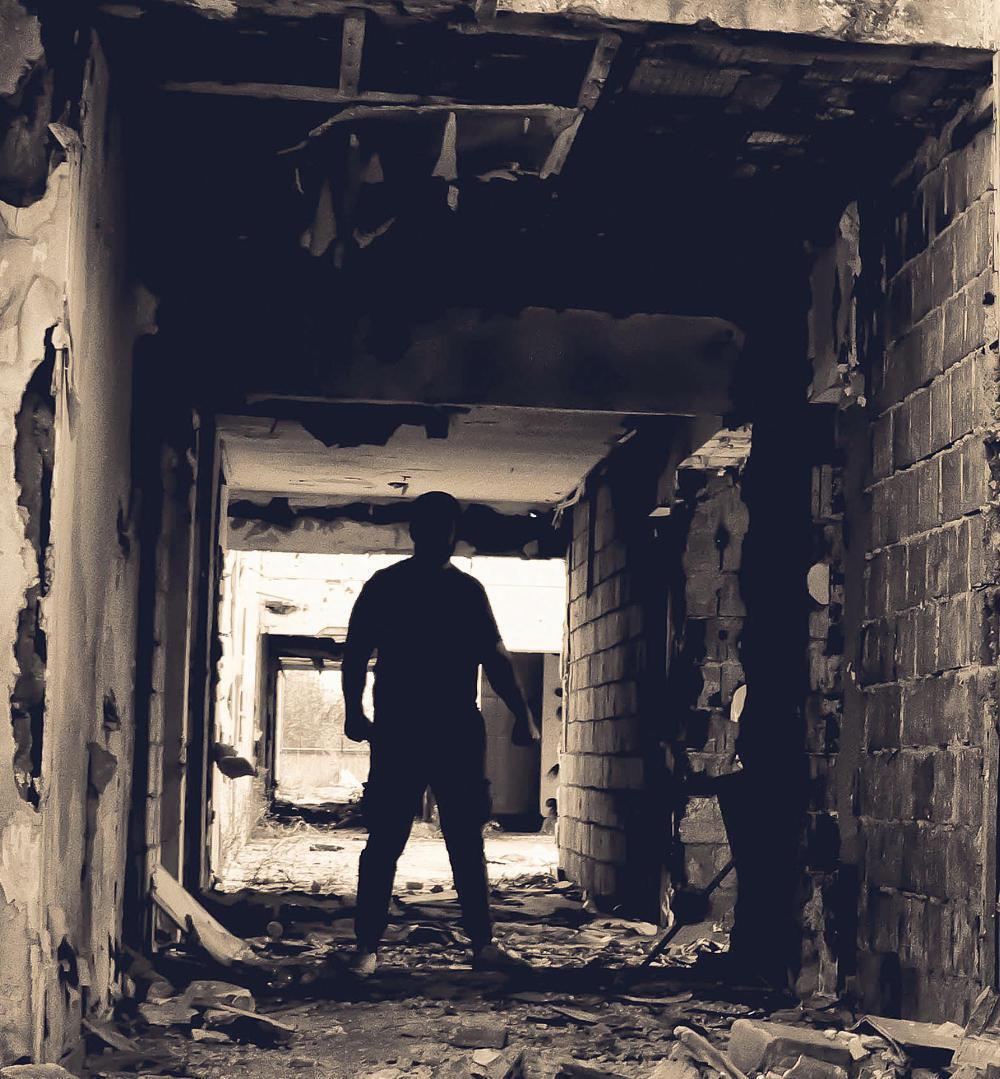 Οχι, δεν μπορώ να τηλεφωνήσω, θα ακουστώ. Βρίσκομαι κρυμμένος στα σκοτάδια μιας εγκαταλελειμμένης βιομηχανίας, με ψάχνουν από δωμάτιο σε δωμάτιο. Ακούω τα βήματά τους και βλέπω τις πελώριες σκιές τους στο ξεφτισμένο τσιμέντο του τοίχου.