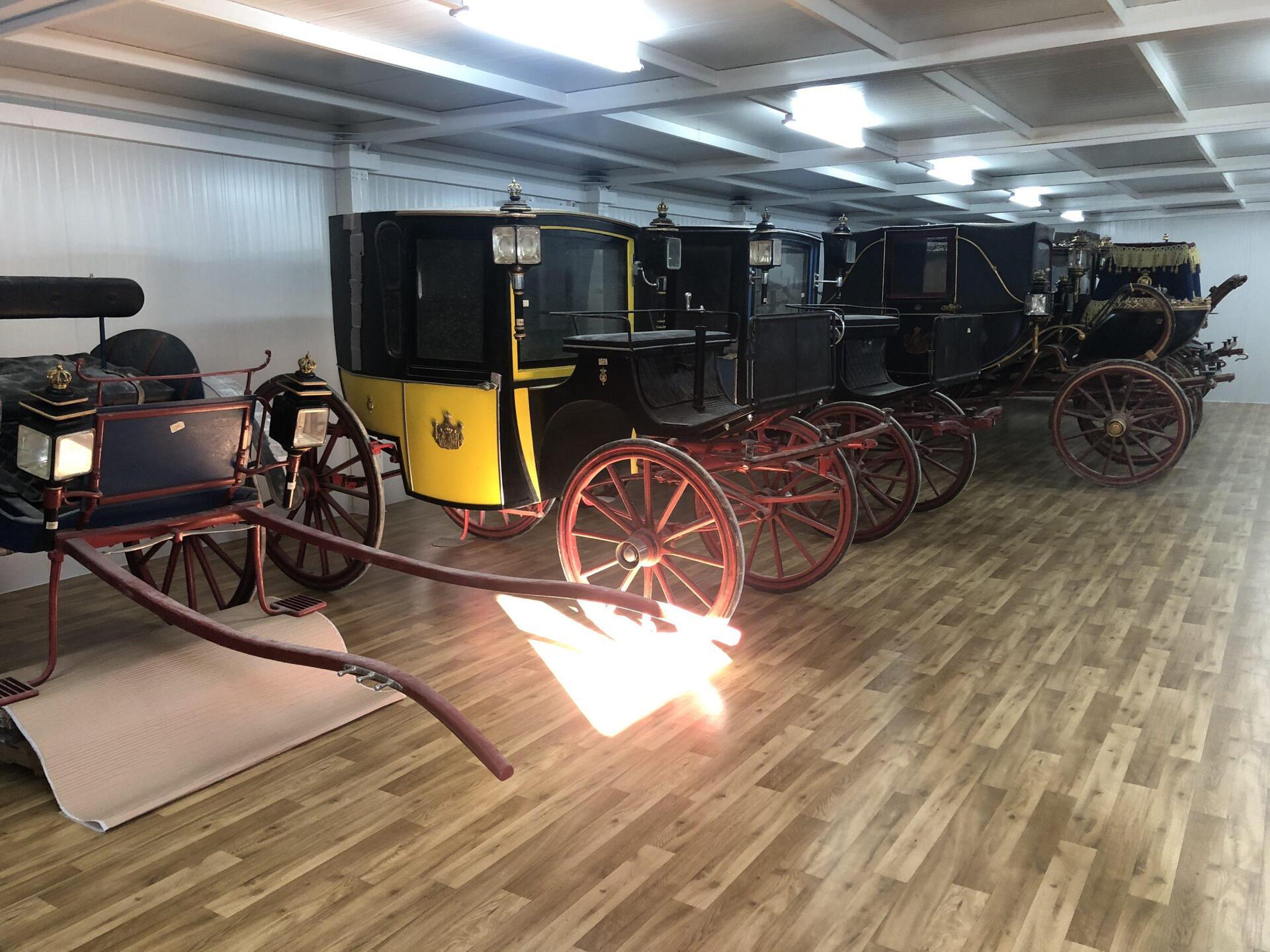 Από τον Στάβλο μεταφέρθηκαν και οι άμαξες της τέως βασιλικής οικογένειας, οι οποίες τοποθετήθηκαν σε νέο αποθηκευτικό χώρο σύγχρονων προδιαγραφών με συνθήκες αποθήκευσης ασφάλειας και προστασίας, ο οποίος κατασκευάστηκε με την χορηγία της ΑΜΚΕ Αιγέας, δίπλα στον χώρο που φυλάσσονται τα αυτοκίνητα της τ. βασιλικής οικογένειας. Οι άμαξες δέχθηκαν τις επείγουσες σωστικές επεμβάσεις από το κλιμάκιο συντηρητών της ΔΣΑΝΜ για την προσωρινή συγκράτηση και προστασία των αποκολλημένων χρωματικών στρωμάτων και την απομάκρυνση ρύπων και χαλαρών επικαθίσεων, μετά από τη μακρόχρονη παραμονή 52 ετών, εντός του κτηρίου του Στάβλου και σε εντελώς ακατάλληλες συνθήκες.