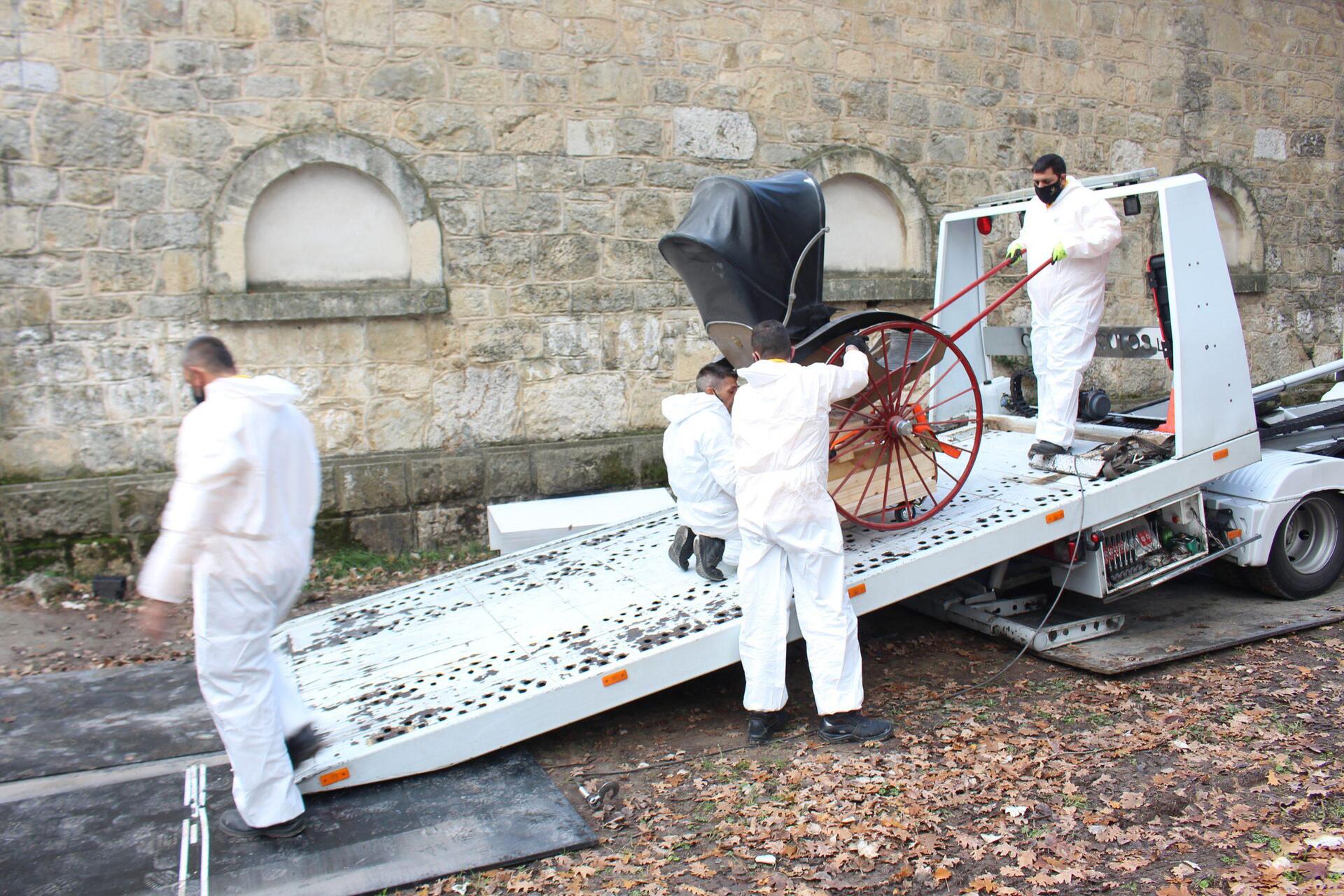 Ολοκληρώθηκε η εκκένωση του Στάβλου του Γεωργίου Α΄, η οποία ξεκίνησε στις 3 Νοεμβρίου 2020 και υλοποιήθηκε σύμφωνα με τη μεθοδολογία της Διεύθυνσης Συντήρησης Αρχαίων και Νεώτερων Μνημείων (ΔΣΑΝΜ) από μόνιμο προσωπικό της Διεύθυνσης και την ευγενική συνδρομή του κ. Αθανασίου Μαρτίνου. Το περιεχόμενο του κτηρίου αξιολογήθηκε από τη Διεύθυνση Νεώτερης Πολιτιστικής Κληρονομιάς, και η πλειονότητα των αντικειμένων συσκευάστηκε και μεταφέρθηκε με ασφάλεια σε νέο αποθηκευτικό χώρο εντός του κτήματος, ενώ απομακρύνθηκαν άχρηστα και κατεστραμμένα στοιχεία.