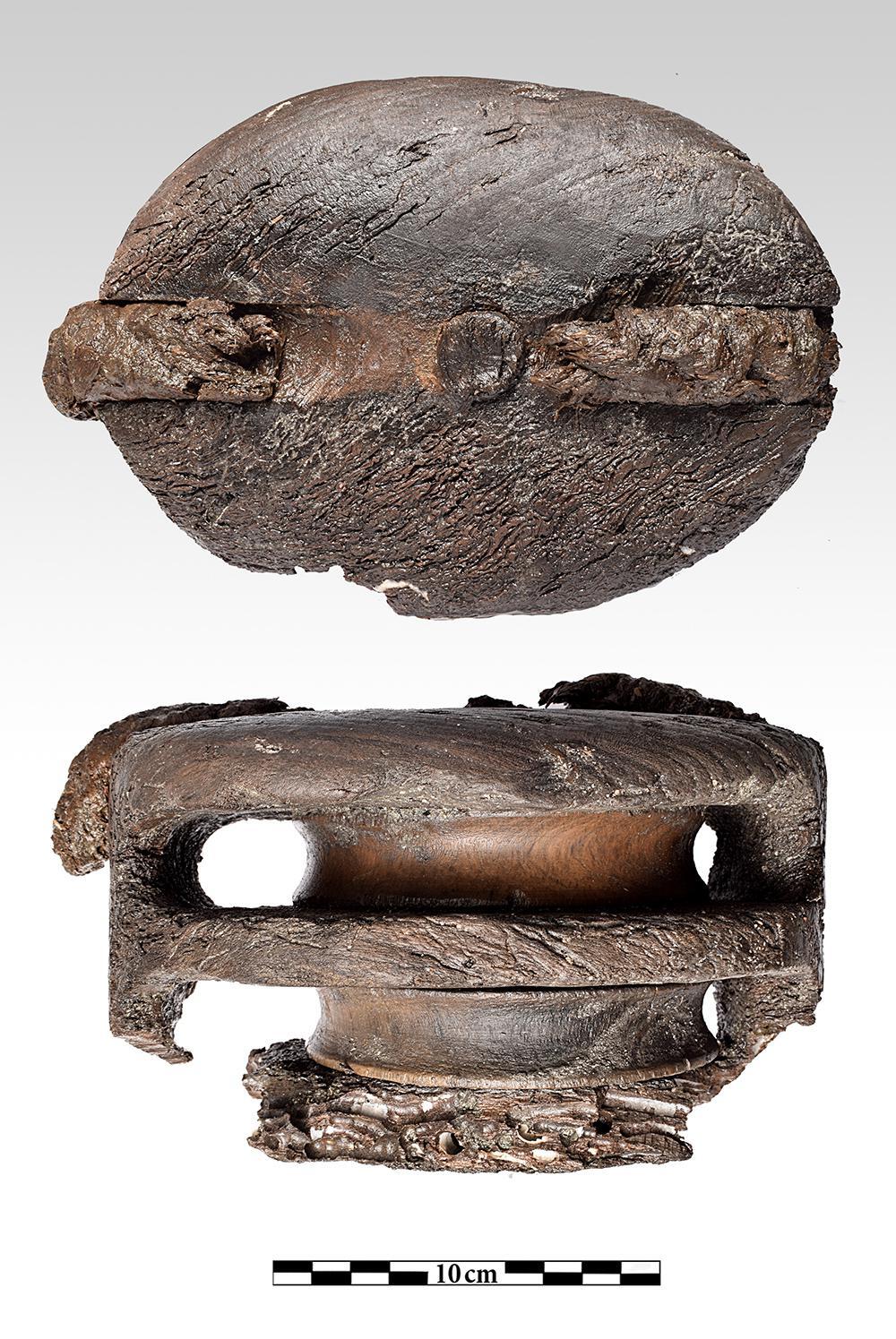 Ξύλινες δέστρες, ξύλινοι διαμπερείς κύλινδροι που χρησίμευαν για την κύλιση της κεραίας του κεντρικού ιστίου στον ιστό, τροχαλίες διαφόρων μεγεθών (35 έχουν ανελκυστεί μέχρι σήμερα) κ.ά. περιλαμβάνονται στη «σοδειά» των ευρημάτων. «Αρχίζουμε πλέον να έχουμε μια πιο πλήρη εικόνα της ναυπηγικής πλευράς του πλοίου, κάτι που μας έλειπε. Ξέραμε, για παράδειγμα, ότι είναι ένα μπρίκι, αλλά δεν είχαμε περισσότερες λεπτομέρειες. Αυτό που ξέρουμε τώρα είναι ότι είναι ένα μπρίκι που είχε ναυπηγηθεί στην Αμερική, ότι είχε κατασκευαστεί από κέδρο και από βελανιδιά και πλέον αρχίζουμε και εντοπίζουμε αντικείμενα που έχουν άμεση σχέση με τον εξαρτισμό του», επισημαίνει ο κ. Κουρκουμέλης.