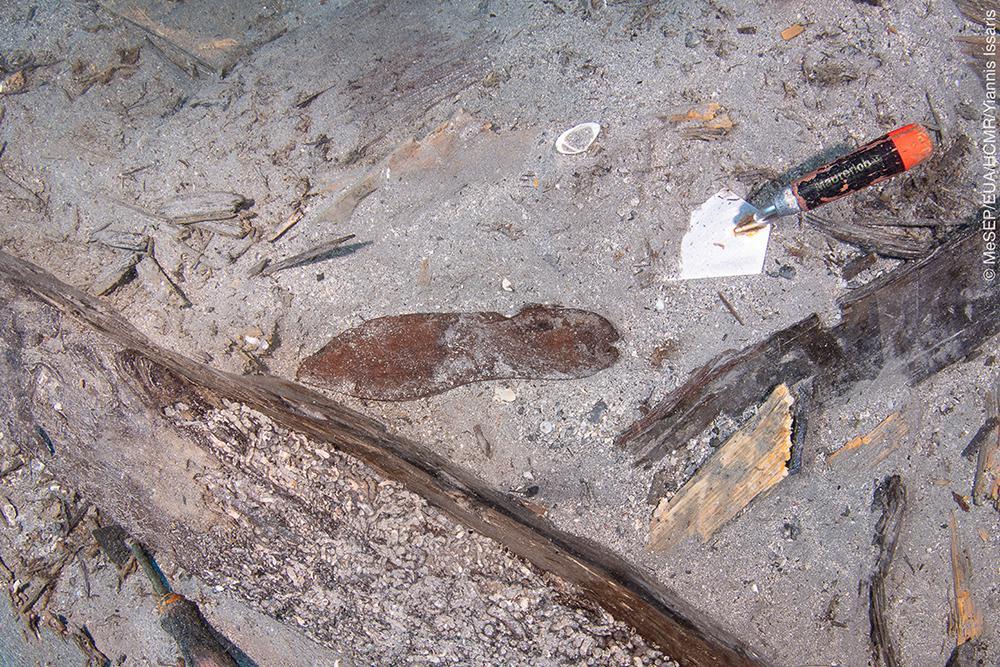 «Φέτος μπορέσαμε και ανελκύσαμε διάφορα αντικείμενα που είχαν σχέση με τα εξαρτήματα που χρησιμοποιούσαν, κυρίως ξύλινα, για το κατάρτι, για τα ξάρτια, για τα πανιά..», σημειώνει ο κ. Κουρκουμέλης και προσθέτει: «Επίσης για πρώτη φορά βρήκαμε δέρματα. Βρήκαμε κατ’ αρχάς δέρματα από παπούτσια. Και επιπλέον βρήκαμε και κομμάτια από δέρμα το οποίο χρησιμοποιούσαν για να προστατεύουν από τη φθορά τα ξύλινα κομμάτια του πλοίου που έρχονταν σε επαφή μεταξύ τους».