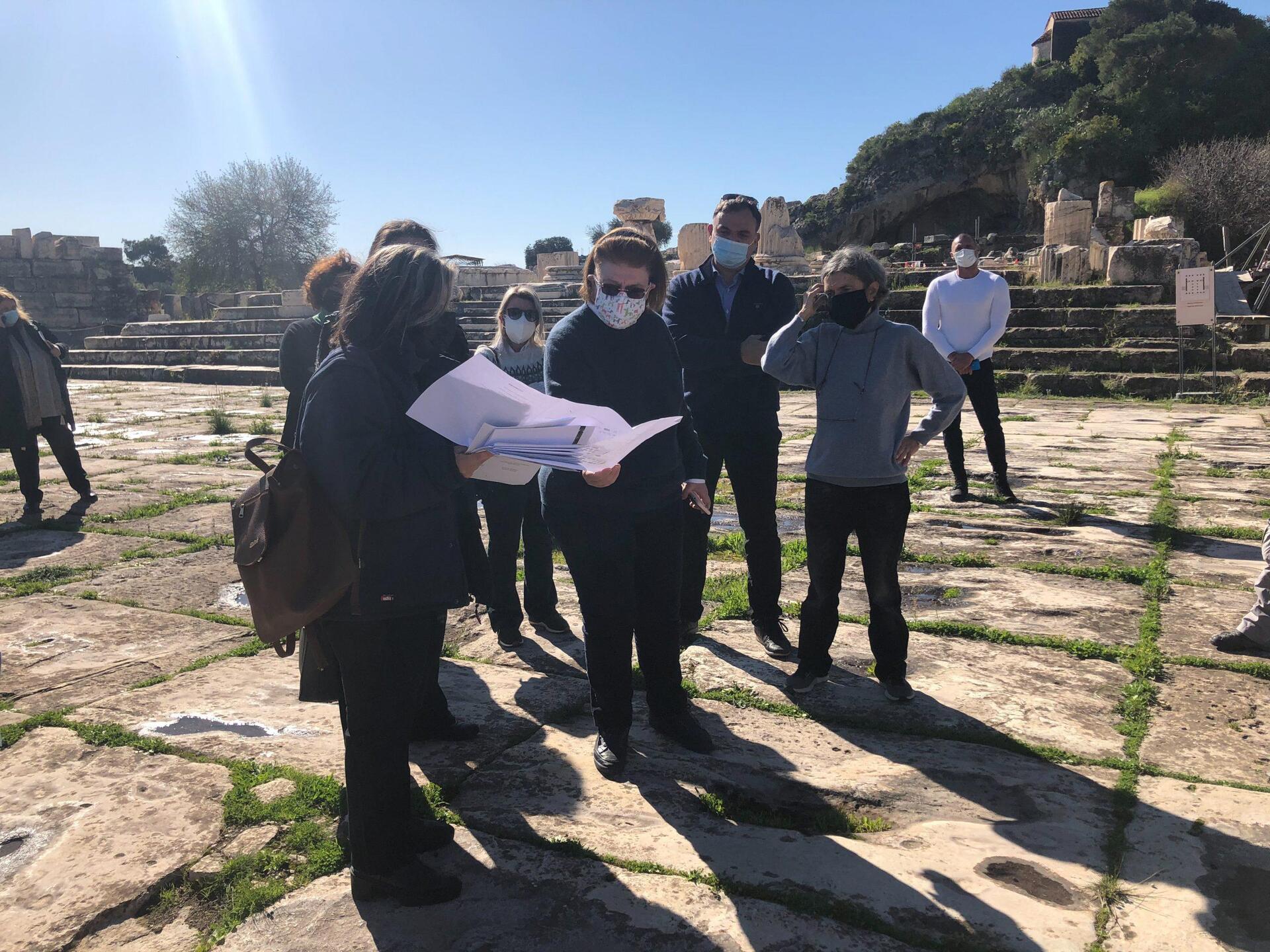 Στιγμιότυπο από την αυτοψία της ηγεσίας του ΥΠΠΟΑ στον αρχαιολογικό χώρο.