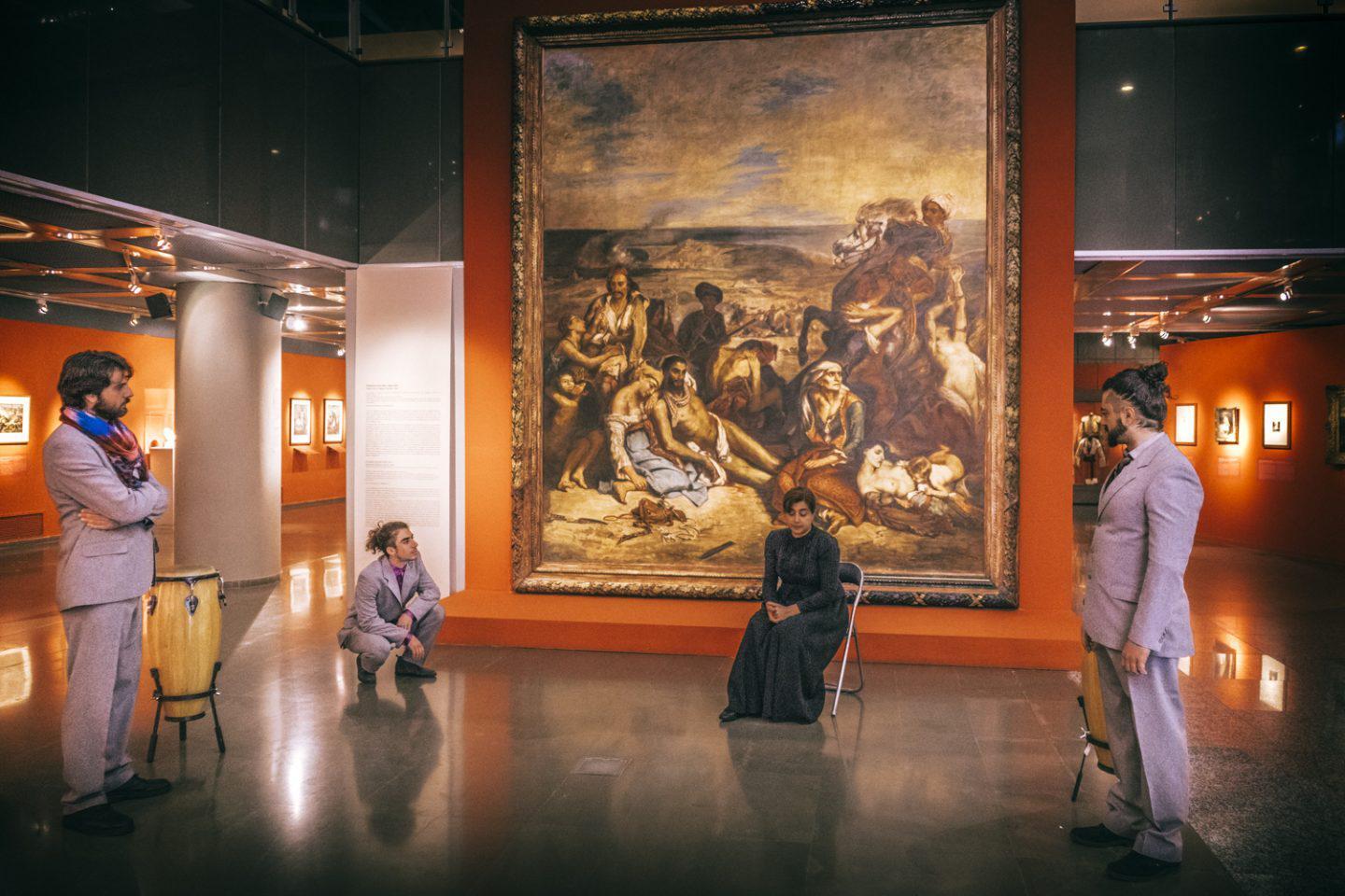 Με φόντο τις «Σφαγές της Χίου», ζωντανεύει στον εκθεσιακό χώρο του Τελλογλείου το Σαλόν της Ακαδημίας Καλών Τεχνών στο Παρίσι, όπου ο Ευγένιος Ντελακρουά, ως εκπρόσωπος του ρομαντικού κινήματος αντιμετωπίζει τον κλασικιστή Αύγουστο Ενγκρ.