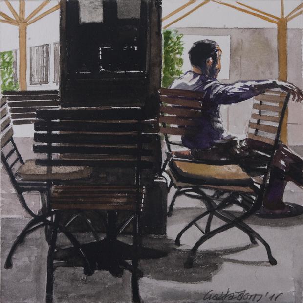 Ο ζωγράφος καταπιάνεται πολύ με τα εσωτερικά των σπιτιών. «Με ενδιαφέρει αυτό το θέμα γιατί έχει να κάνει με την ευρύτερη έννοια της εσωτερικότητας», μας λέει. «Υπάρχει πάντα πολύ έντονη η παρουσία των ιδιοκτήτων, των ανθρώπων που ζουν σε αυτούς τους χώρους».