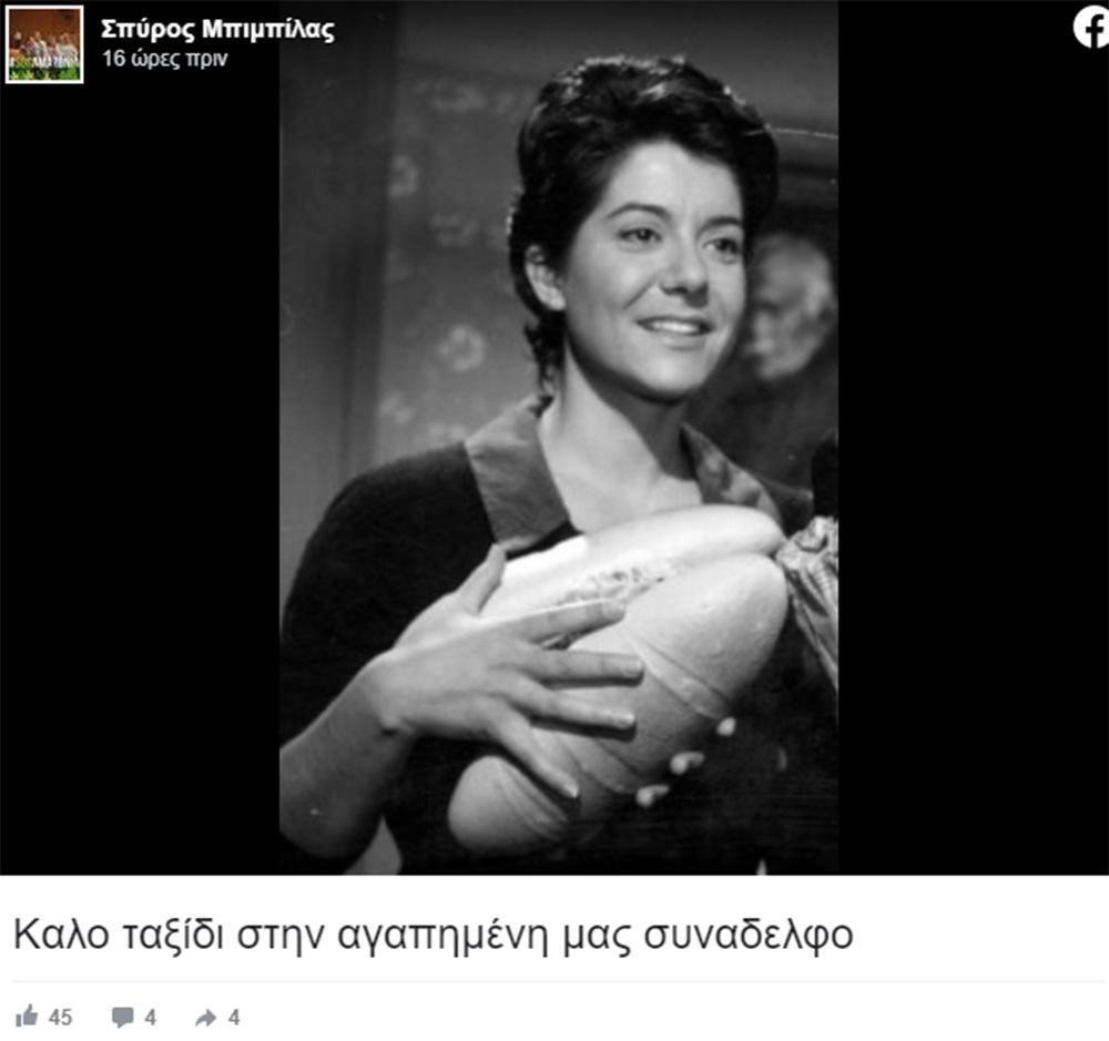Ο γιος της ηθοποιού, Νίκος Βέμπος, έγραψε στο facebok: