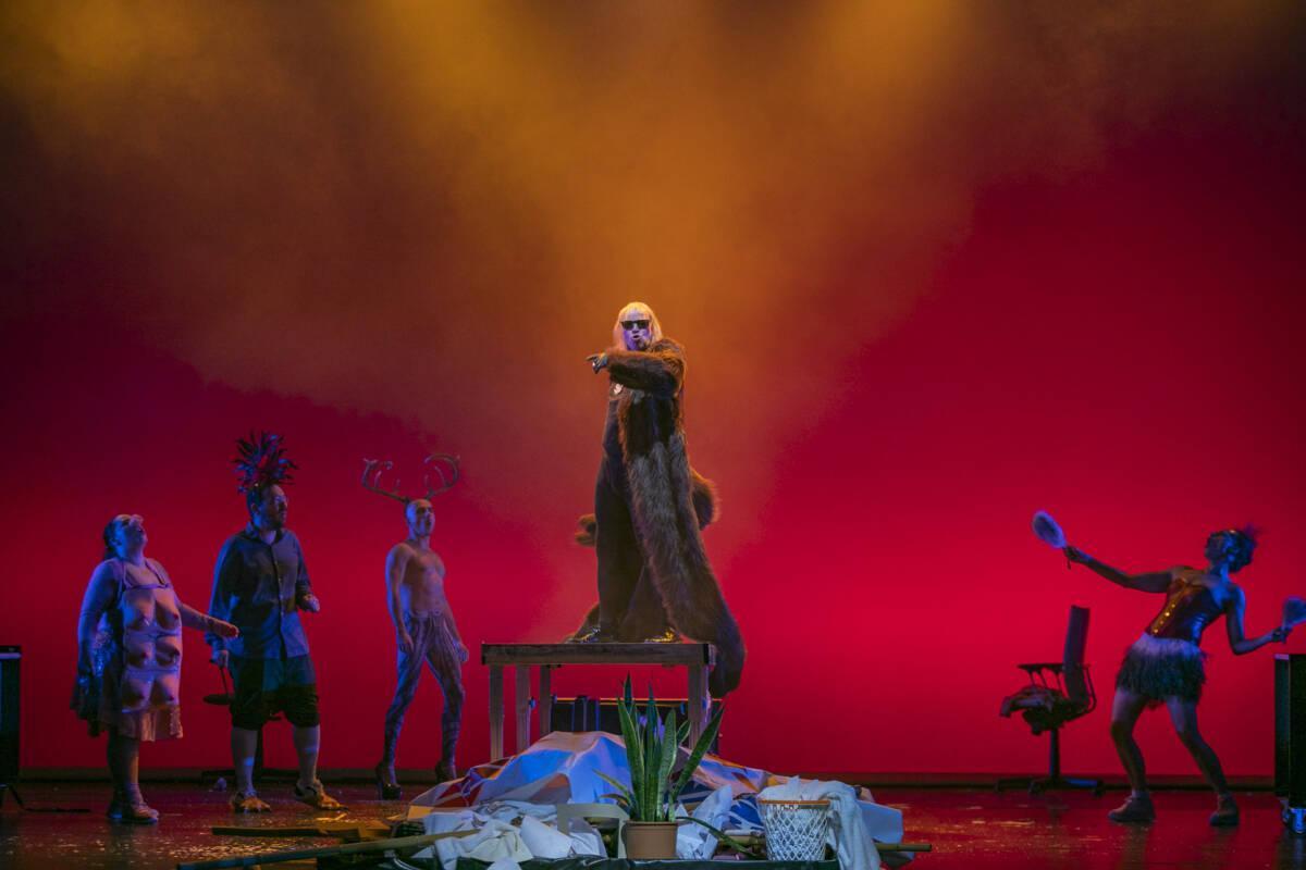 Το χάπενινγκ «Κin Baby» (18/4) της κ. Γιαννακοπούλου μεταμορφώνει τη Στέγη στο κλαμπ «Κοσμογονία» και θέτει το ερώτημα «είναι η πίστη στο “κάτι καινούργιο” πιο ισχυρή από την πραγματικότητα;».