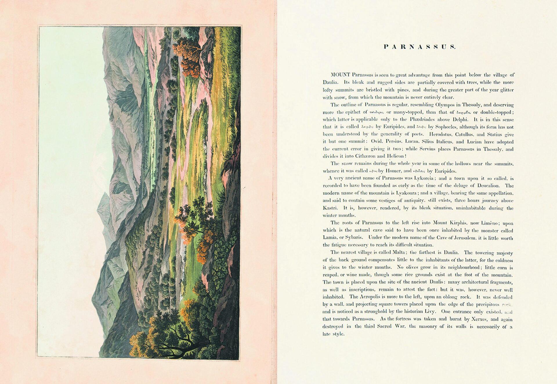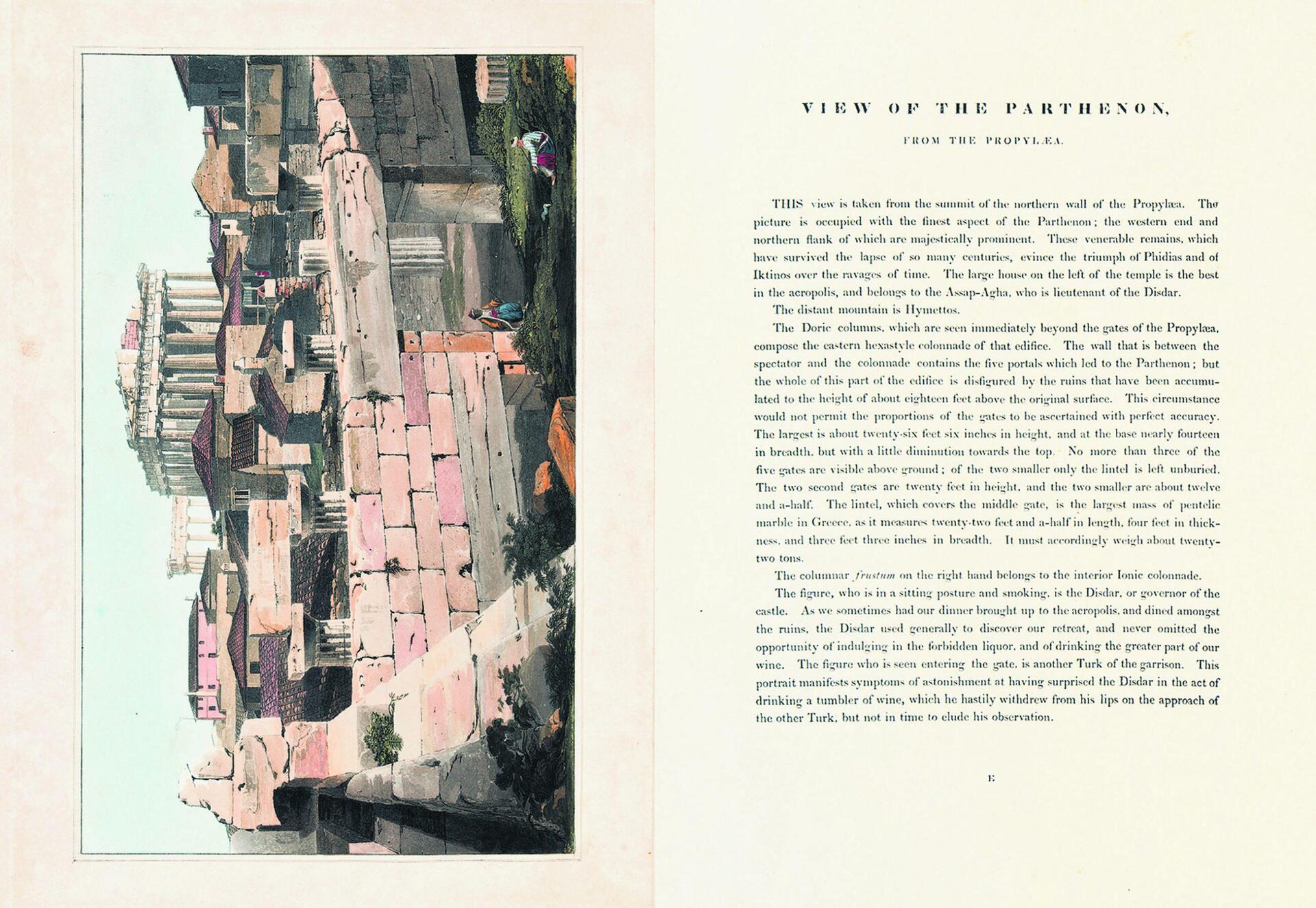 Στον συλλεκτικό τόμο ο Ντόντγουελ μέσα από τον πολύτιμο χρωστήρα του αποτυπώνει µε ρεαλιστικότητα και υψηλή τέχνη την Ακρόπολη, τη Δωδώνη, τον Παρνασσό, όπως και το ποτάμι του Ιλισού σε μια πολύ σπάνια εικόνα όταν στις 16 Σεπτεμβρίου 1805 μια νεροποντή το μετέτρεψε σε χείμαρρο.