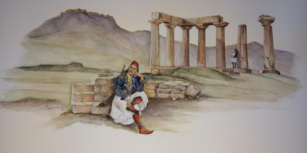 -Το επιβλητικό τοπίο της Αρχαίας Κορίνθου, τα βράχια του Ακροκόρινθου, τα διάσπαρτα μέλη του Ναού του Απόλλωνα, όλα αυτά τα ιερά σύμβολα που συνέδεσαν τους αγώνες για την ανεξαρτησία με εκείνους για την διάσωση της πολιτιστικής και εθνικής μας ταυτότητας.