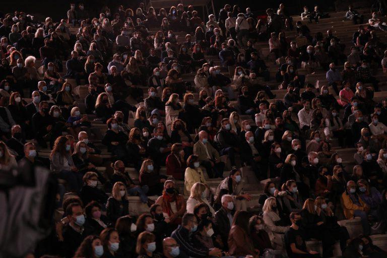 Ο Βασίλης Σκουλάς με τη λύρα του που πάλλονταν στον κρητικό ρυθμό, προκάλεσε ρίγη συγκίνησης στο κοινό, που χειροκροτούσε πολύ θερμά σε κάθε του τραγούδι. Δίπλα του εντυπωσιακή μέσα στο αέρινο φόρεμα της η Κρητικιά αρχόντισσα, όπως την αποκάλεσε, Μαρία Τζομπανάκη που στάθηκε στη σκηνή του Ηρωδείου και τραγούδησε με λυρισμό και βαθιά εκφραστικότητα το «Αχί», τον «Καημό» και το θρηνητικό «Βασίλεψες αστέρι μου». Ξεκίνησε κατανυκτικά με δέηση στην Παναγία, με το προσευχητάρι «Άσπιλε αμόλυντε», καθόλου τυχαία μια και η προσευχή περικλείει το βυζαντινό μέλος, ενώ προηγείται για τους Κρητικούς πριν από κάθε μάχη.