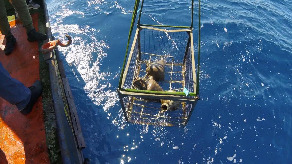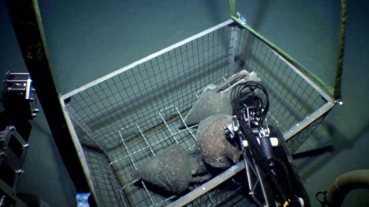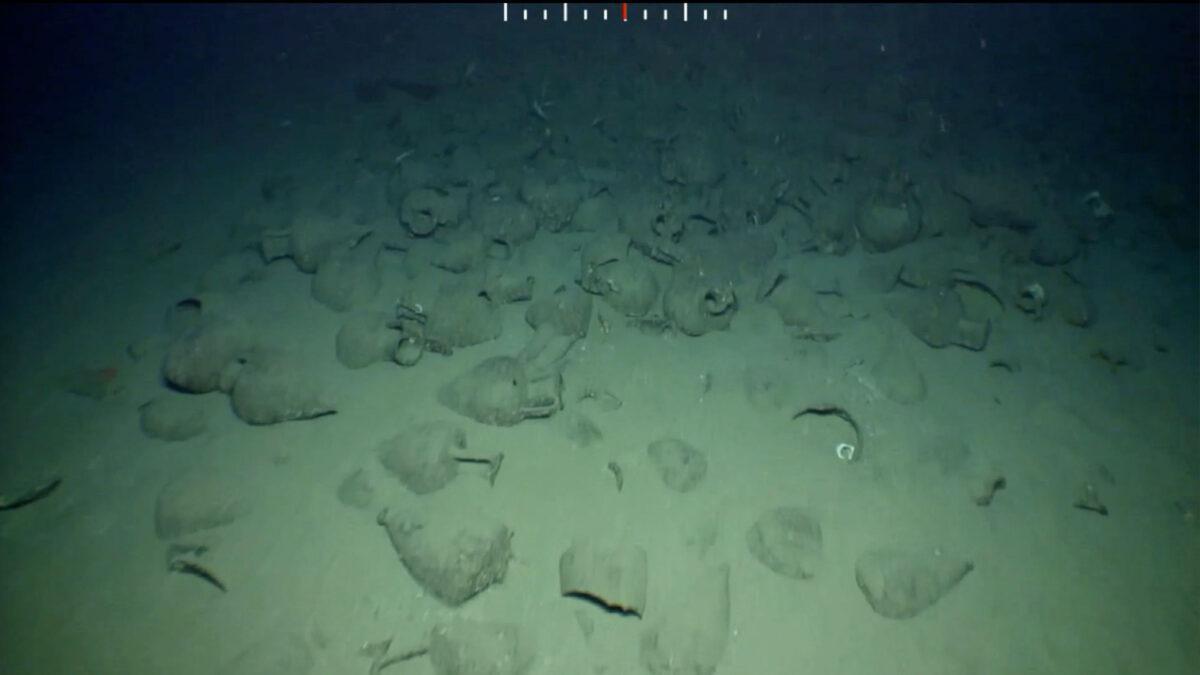 Από τα προκαταρκτικά αποτελέσματα της υποβρύχιας έρευνας διαπιστώθηκε ότι εκτός από το φορτίο του πλοίου που αποτελείται κυρίως από κερκυραϊκούς αμφορείς, δευτερευόντως αμφορείς του επονομαζόμενου τύπου Solocha II, με πιθανή προέλευση από την αρχαία Πεπάρηθο (Σκόπελο), αμφορείς από την Χίο και τρείς πίθους, μετέφερε σύνολο επιτραπέζιων αγγείων από τα οποία ανελκύστηκαν ένας επιτραπέζιος αμφορίσκος με επίπεδη βάση, ένα πινάκιο και ένα ιχθυοπινάκιο και δύο σκυφίδια.