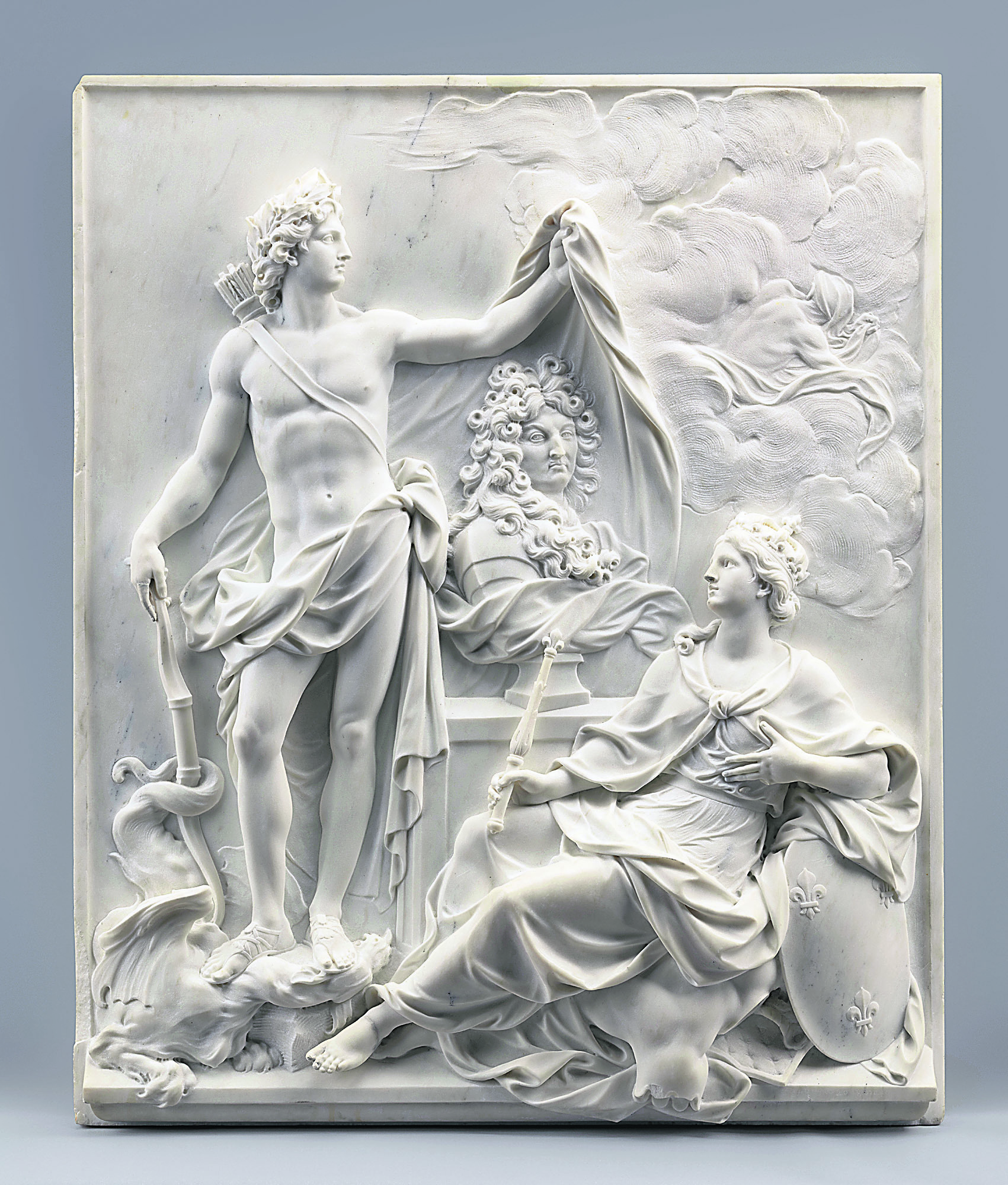 Η έκθεση ολοκληρώνεται με τον «Ευρωπαίο Απόλλωνα», δηλαδή με τον Λουδοβίκο ΙΔ’, ο οποίος επέλεξε να συνδεθεί με τη λατρεία του Ηλιου, που αποτελούσε προσωποποίηση του Απόλλωνα. «Ο Λουδοβίκος ΙΔ’ ενδύεται τη μορφή του Απόλλωνα ως εγγυητής της ειρήνης και της εκεχειρίας», προσθέτει η διευθύντρια. Το μαρμάρινο ανάγλυφο «O Απόλλων Ιητήρ» (θεραπευτής) του Nicolas Coustou από το Μουσείο του Λούβρου εντυπωσιάζει τον επισκέπτη δίπλα στη μαρμάρινη κεφαλή γενειοφόρου Ηρακλή από κολοσσικό άγαλμα.