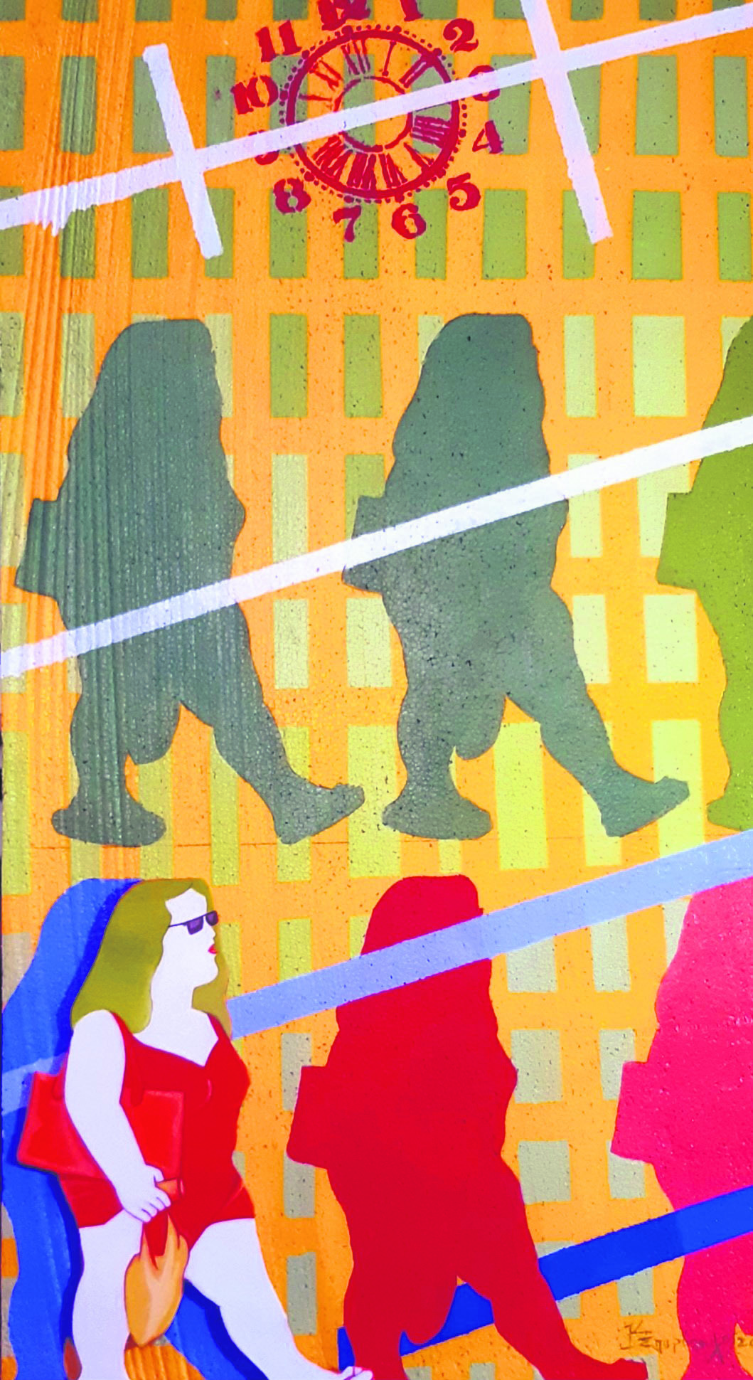 Χρησιμοποιείτε τη γλώσσα της pop art. Eντονα χρώματα και σχήματα με σαφή περιγράμματα. Μιλήστε μας για την τεχνική σας και το χρώμα.