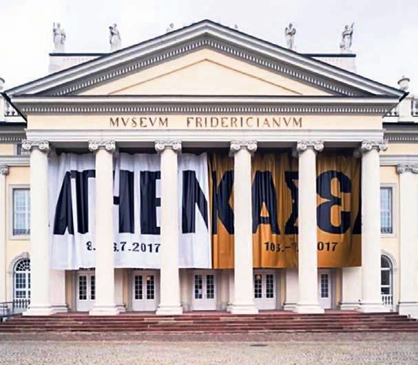 Στο χώρο μπροστά από το μουσείο παρκάρουν αυτές τις μέρες οι νταλίκες με τα έργα της μόνιμης συλλογής του Εθνικού Μουσείου Σύγχρονης Τέχνης, ενώ στην αχανή πλατεία μπροστά από το μουσείο χτίζεται ο «νέος» Παρθενώνας. Είκοσι άτομα εργάζονται πυρετωδώς έτσι, ώστε στις 10 Ιουνίου, στα εγκαίνια της φετινής documenta, το έργο της Μάρτα Μινουχίν να είναι έτοιμο για τους επισκέπτες.