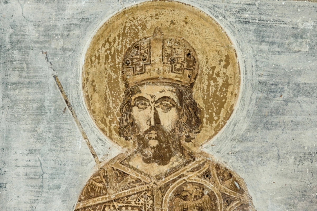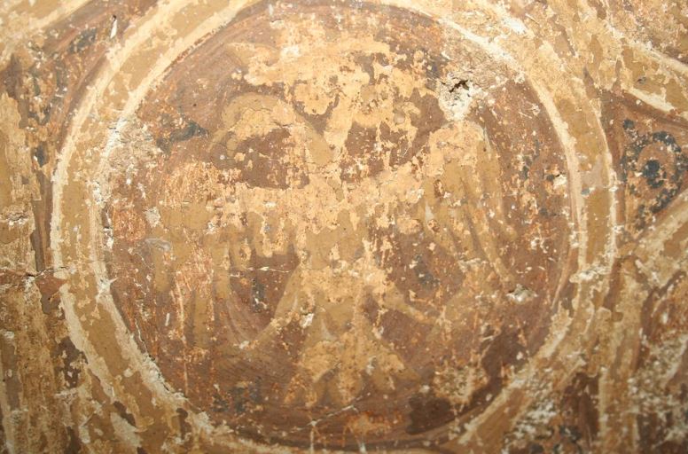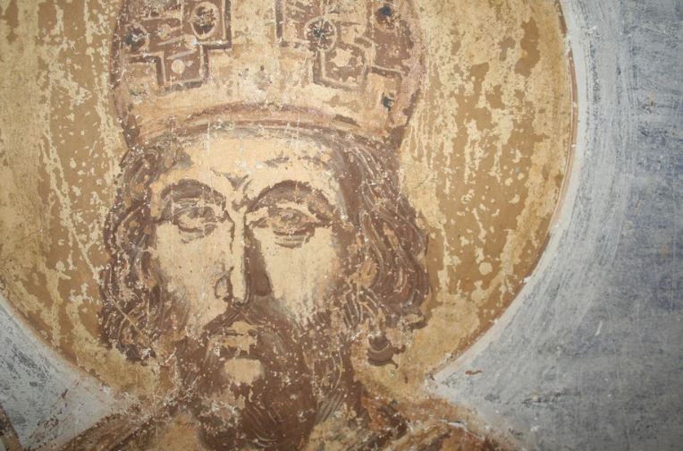 Όπως αναφέρει η ανακοίνωση του ΥΠΠΟ, στην τοιχογραφία απεικονίζεται η μορφή ενός ώριμου άνδρα που φέρει αυτοκρατορικά “διάσημα” (πολυτελή λώρο πάνω από τον ανοιχτόχρωμο σάκκο, διάλιθο στέμμα) και κρατά σταυροφόρο σκήπτρο. Ο χρυσοκέντητος πορφυρός του μανδύας διακοσμείται με μετάλλια, στα οποία εγγράφονται δικέφαλοι αετοί με στέμμα ανάμεσα στις κεφαλές τους, διακριτικό των μελών της οικογένειας των Παλαιολόγων. Η παρουσία των δικέφαλων αετών στο ένδυμα της μορφής, σε συνδυασμό με τα υπόλοιπα insignia, αποτελούσαν ένα εικονογραφημένο μήνυμα που επέτρεπε στον θεατή να ταυτοποιήσει αδιαμφισβήτητα τον άντρα με αυτοκράτορα.