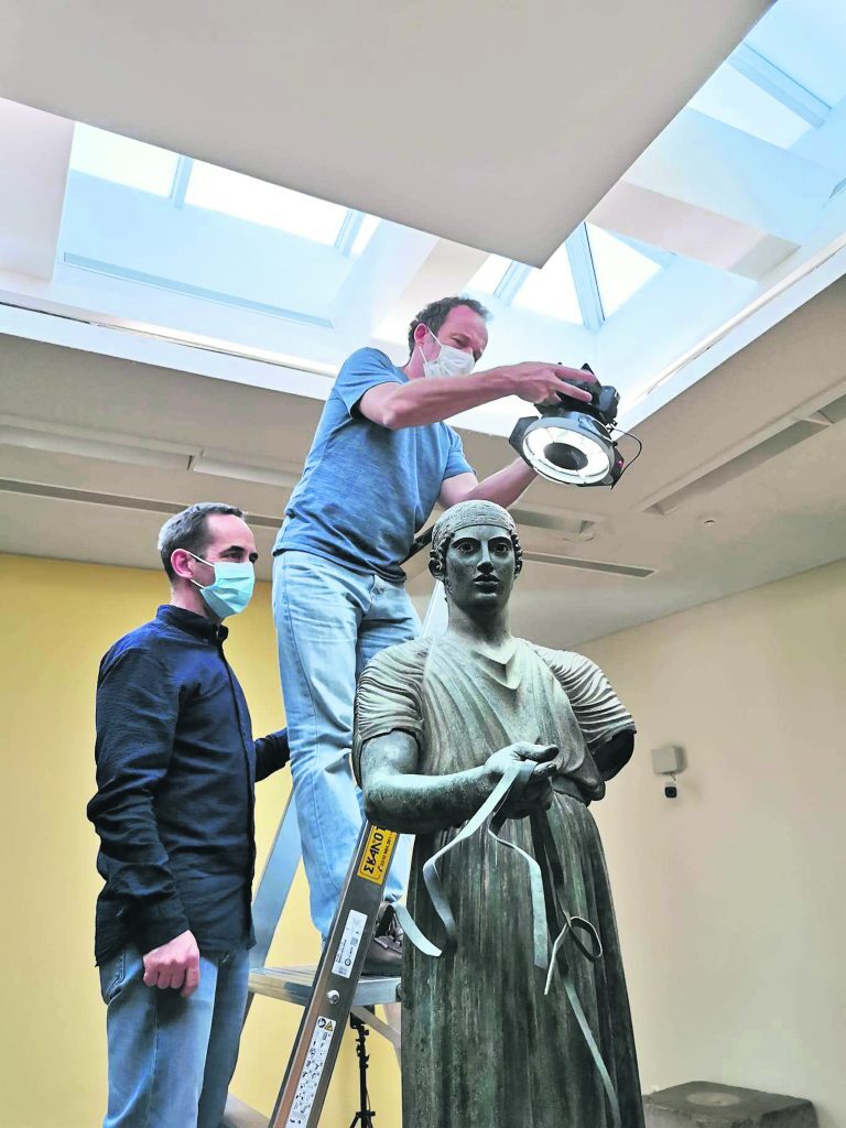 «Δηλαδή όλος ο τεχνολογικός εξοπλισμός, καθώς και το επιστημονικό προσωπικό, προγραμματίστηκαν σύμφωνα με τις ανάγκες λειτουργίας του μουσείου και της επισκεψιμότητος του γλυπτού», εξηγεί η κ. Ψάλτη, κάνοντας ειδική μνεία στην επιστημονική ομάδα και τους συντηρητές της ΕΦΑ Φωκίδος Λουκά Μαυρόπουλο, Χρήστο Παντερμάκη, Αθανασία Ρέγκλη και τον αρχιφύλακα της Εφορείας Χρήστο Χρηστόπουλο και στην αμέριστη υποστήριξη της διευθύντριας της Σχολής, Βαλερί Σανκόφσκι.