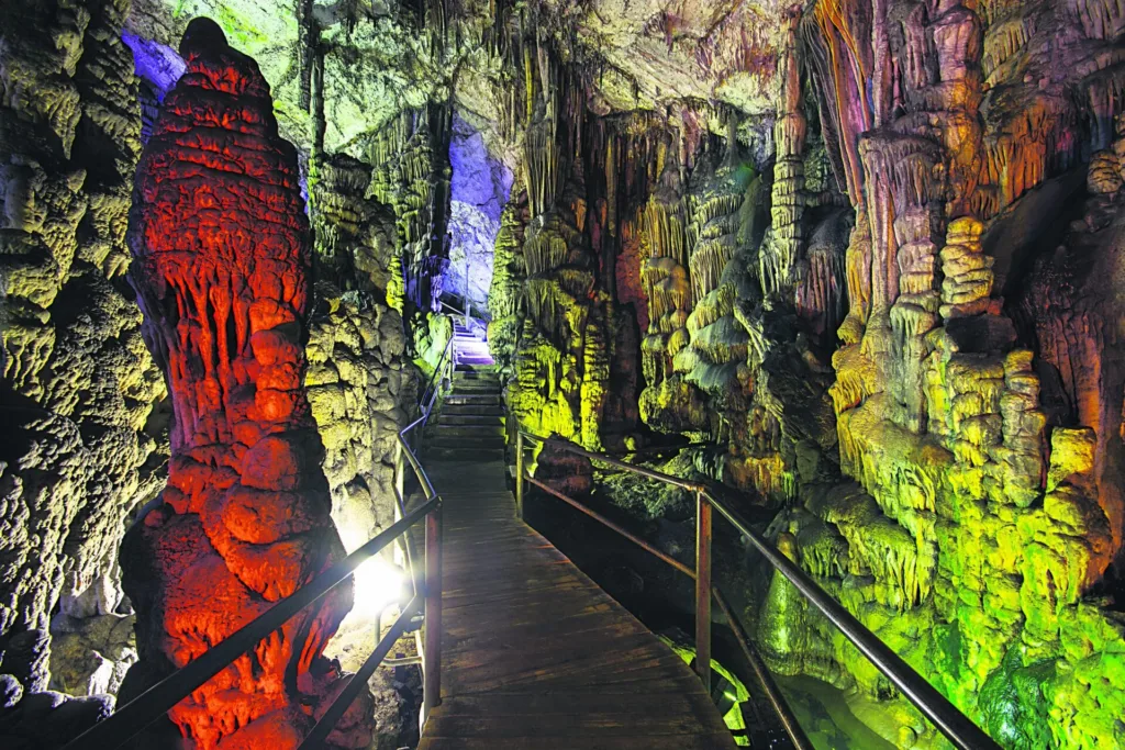 Ευρήματα από τη νεολιθική, τη μεσομινωική έως τη ρωμαϊκή περίοδο αποδεικνύουν τη συνεχή χρήση του από τον άνθρωπο, κυρίως για λατρευτικούς σκοπούς. Το σπήλαιο έχει έκταση 2.200 τ.μ. και το μήκος της διαδρομής περιήγησης στο εσωτερικό του είναι περίπου 250 μ. Διαθέτει πλούσιο διάκοσμο σταλακτιτών, σταλαγμιτών και μία λίμνη.
