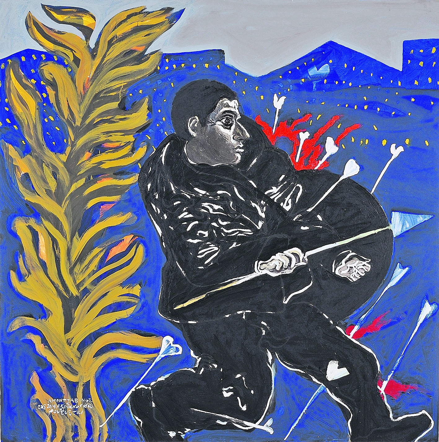 Ξεναγώντας μας στην έκθεση, η Μπία Παπαδοπούλου σημειώνει για το έργο του κάθε καλλιτέχνη ξεχωριστά: «Ο Τάσος Μαντζαβίνος εικονογραφεί αλληγορικά και με χιούμορ την ψυχαναλυτική θεώρηση που αναδεικνύει τη σκοτεινή πλευρά του εαυτού… Στα έργα του, ήρωας είναι σχεδόν πάντα ο ίδιος. Μεταμφιέζεται εσαεί, αλλάζοντας μαγικά ρόλους. Ανθρωπος, δράκος, και τα δύο μαζί…