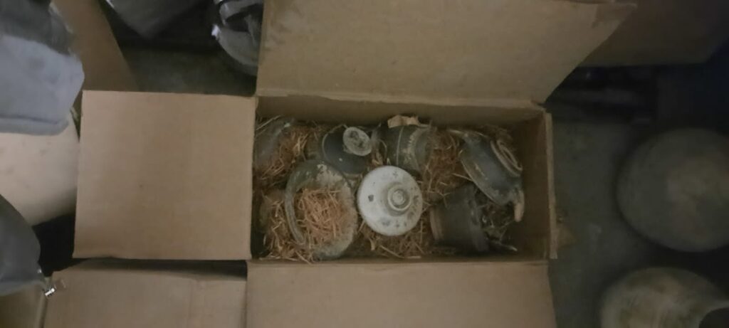 Κατά τον εντοπισμό των αρχαίων αντικειμένων τον Φεβρουάριο του 2024, ο αρμόδιος εκπρόσωπος της Εθνικής Πινακοθήκης – Μουσείου Αλέξανδρου Σούτσου (ΕΠΜΑΣ) ενημέρωσε άμεσα το Υπουργείο Πολιτισμού για τα ευρήματα. Αρχαιολόγοι από τη Διεύθυνση Τεκμηρίωσης και Προστασίας Πολιτιστικών Αγαθών (ΔΤΠΠΑ) και το Νομισματικό Μουσείο πραγματοποίησαν αυτοψία στον χώρο. Εντοπίστηκαν και καταγράφηκαν 102 αρχαία αντικείμενα που χρονολογούνται στους γεωμετρικούς μέχρι τους ελληνιστικούς χρόνους (κύλικες, κάνθαροι, λεκανίδες, λήκυθοι, σκύφοι, ειδώλια κ.α.), 36 αντικείμενα θρησκευτικού χαρακτήρα μεταβυζαντινών χρόνων (εικόνες, ασημένιες επενδύσεις, αρχιερατική ράβδος και άλλα εκκλησιαστικά αντικείμενα), καθώς και 3.247 νομίσματα, μετάλλια, σφραγιδόλιθοι, σταθμία, μολυβδόβουλα που χρονολογούνται από τους αρχαίους έως τους νεώτερους χρόνους.