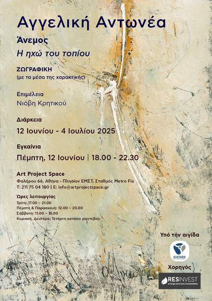 Μέσα από μια σειρά εικαστικών έργων, η δημιουργός προσεγγίζει τον άνεμο ως συνδετικό άξονα που κινητοποιεί τις μορφές και τις σχέσεις, αναδεικνύοντας την αλληλεπίδραση ανθρώπου και φυσικού περιβάλλοντος. Συνδυάζοντας στους ζωγραφικούς της πίνακες τα μέσα της χαρακτικής με τις χειρονομιακές παρεμβάσεις, η Αγγελική Αντωνέα αποτυπώνει τον άνεμο ως ενέργεια με βαθιά επίδραση στο κοινωνικό γίγνεσθαι, αιχμαλωτίζοντας τη ροή του.